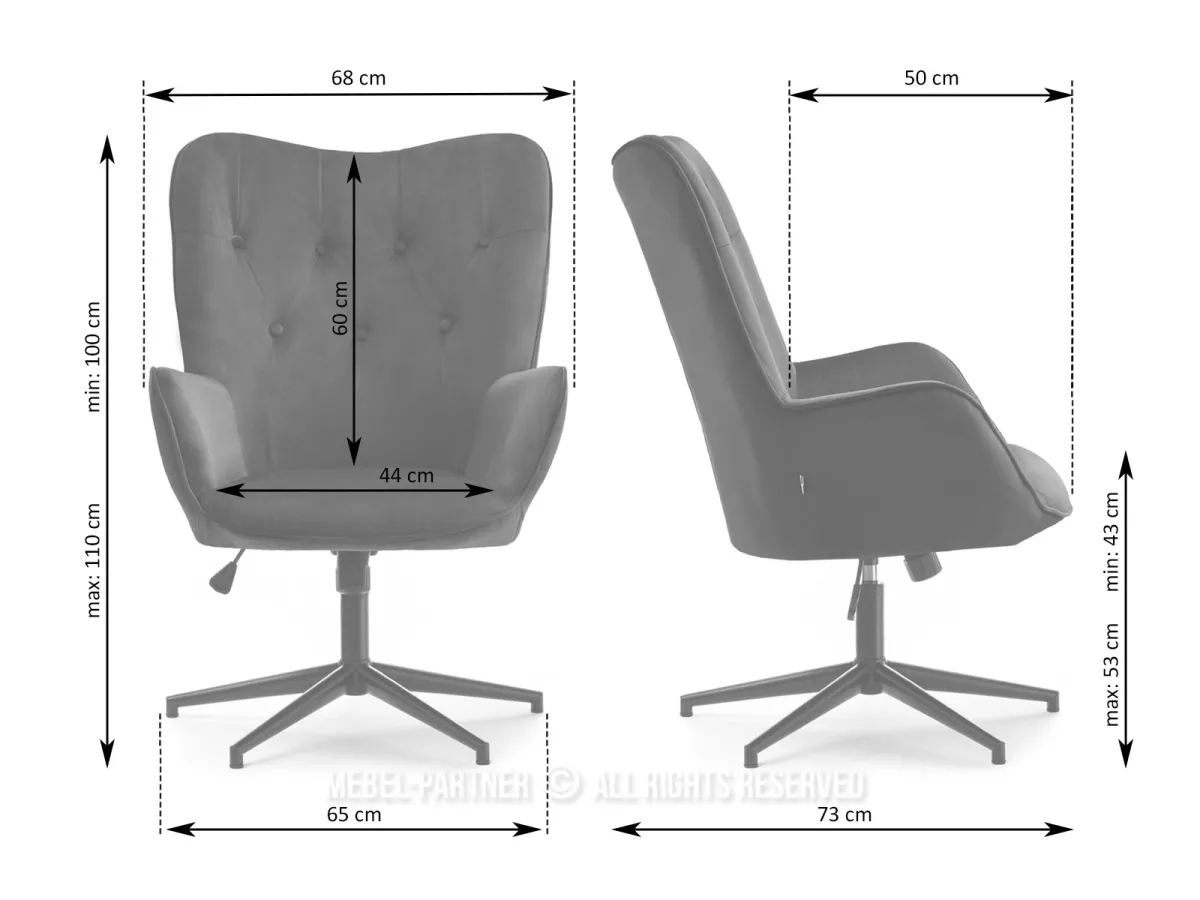 Otočné křeslo FIDAL s prošívaným vysokým opěradlem dodá prostoru eleganci. Výhodou je možnost nastavení výšky základny a otočný sedák.