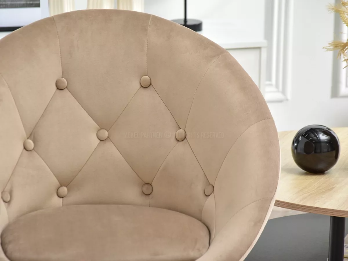 Otočné křeslo DERIAN svým designem potěší každého zákazníka. Křeslo se vyjímá dekorativním prošíváním na čalounění a stabilní kovovou základnou.