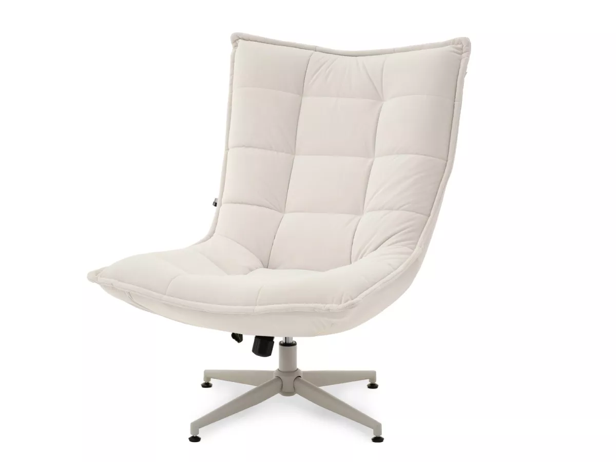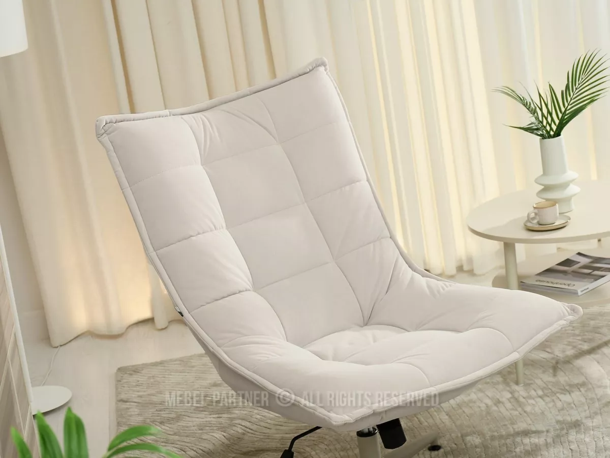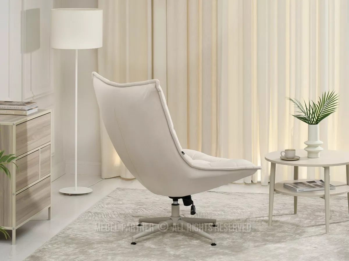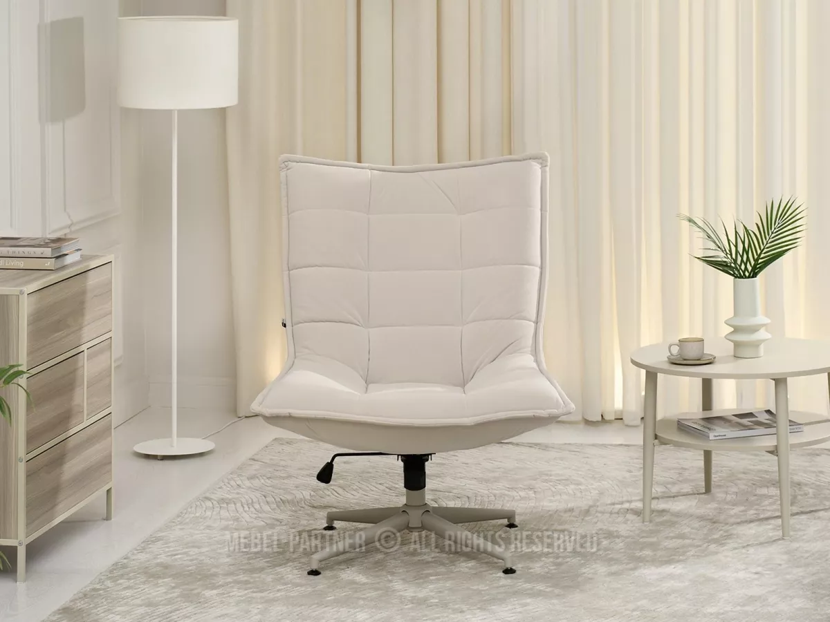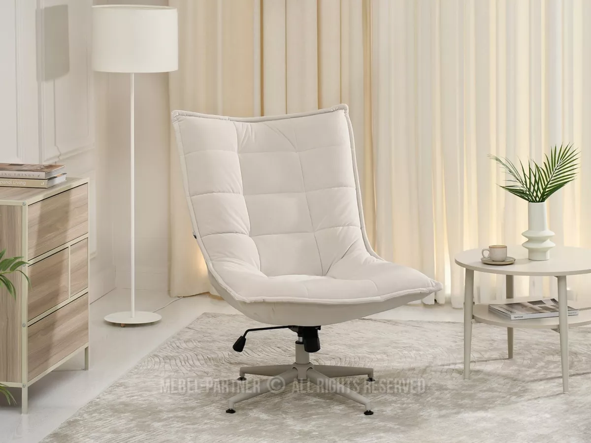 Otočné křeslo NIZAR se stane dokonalým doplňkem každé místnosti. Křeslo se vyjímá dekorativním prošíváním a stabilní otočnou kovovou základnou.
