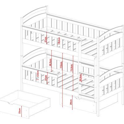 Potřebujete zařídit plně funkční dětský pokojíček pro 2 děti, ale jste omezení prostorem? Patrová postel DITA vám pomůže vyřešit váš problém. Bezpečnost vašich děti je pro nás prioritou. Obě úrovně postele jsou proto vybaveny praktickými a stabilními zábranami ze všech stran.