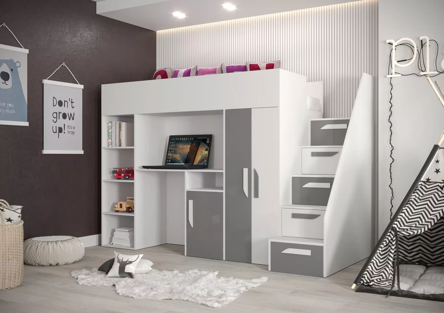 Patrová postel s psacím stolem Klára - bílá / šedá