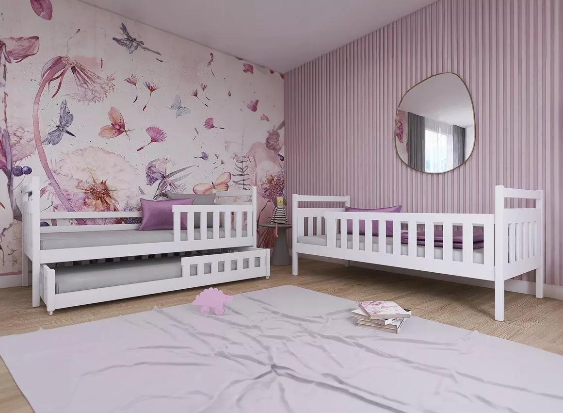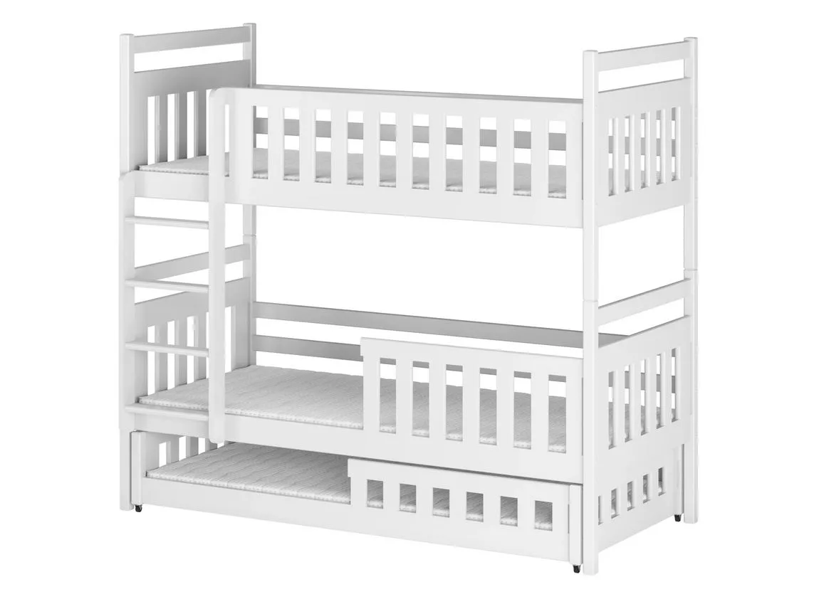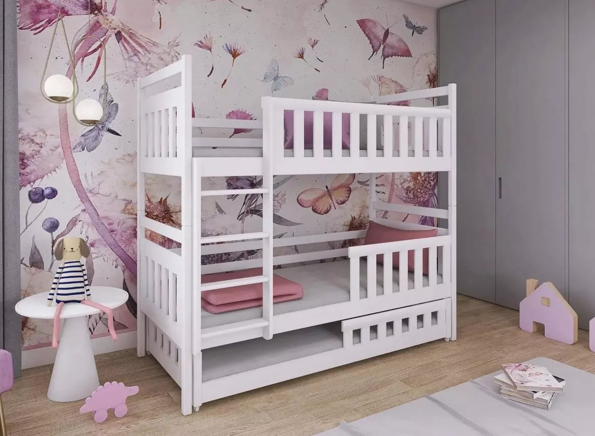 Získejte krásnou dětskou palandu BAYRA o spací ploše 90x200 cm, která zajišťuje pohodlný spánek. Postel nabízí horní a spodní lůžko, a také praktickou přistýlku pro příležitostné přespání kamarádů. Postel s masivní konstrukcí a zábranami proti pádu poskytuje zaručené bezpečí pro vaše dítě.