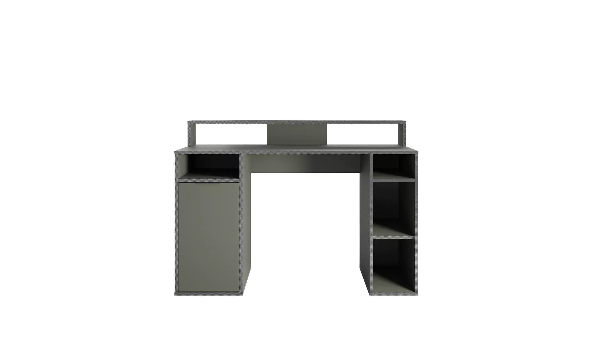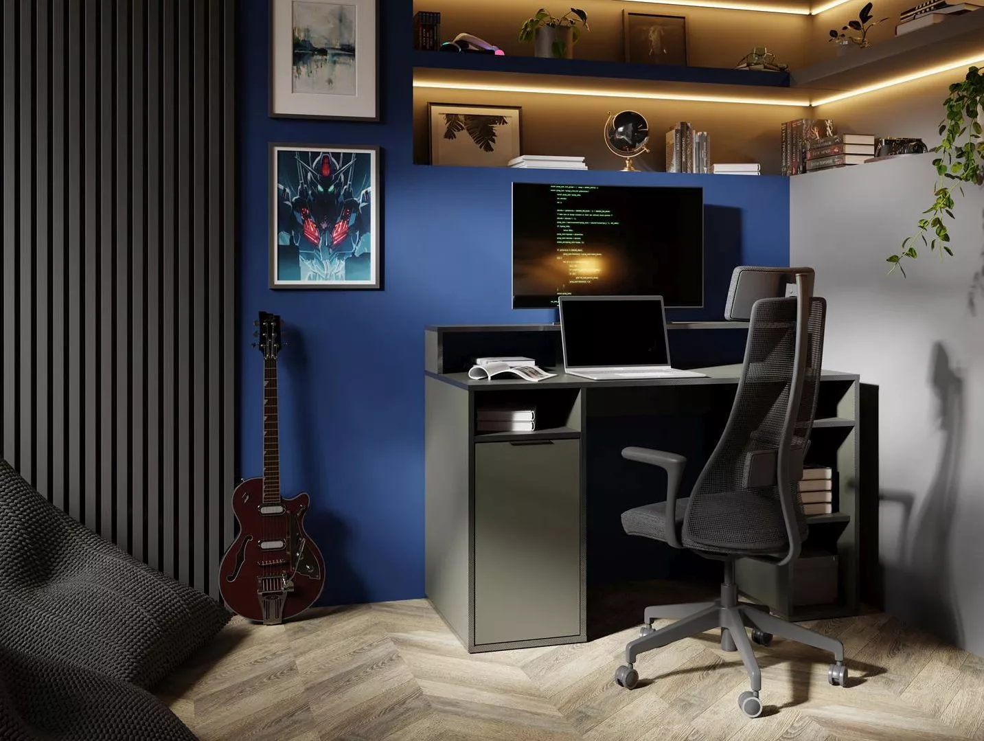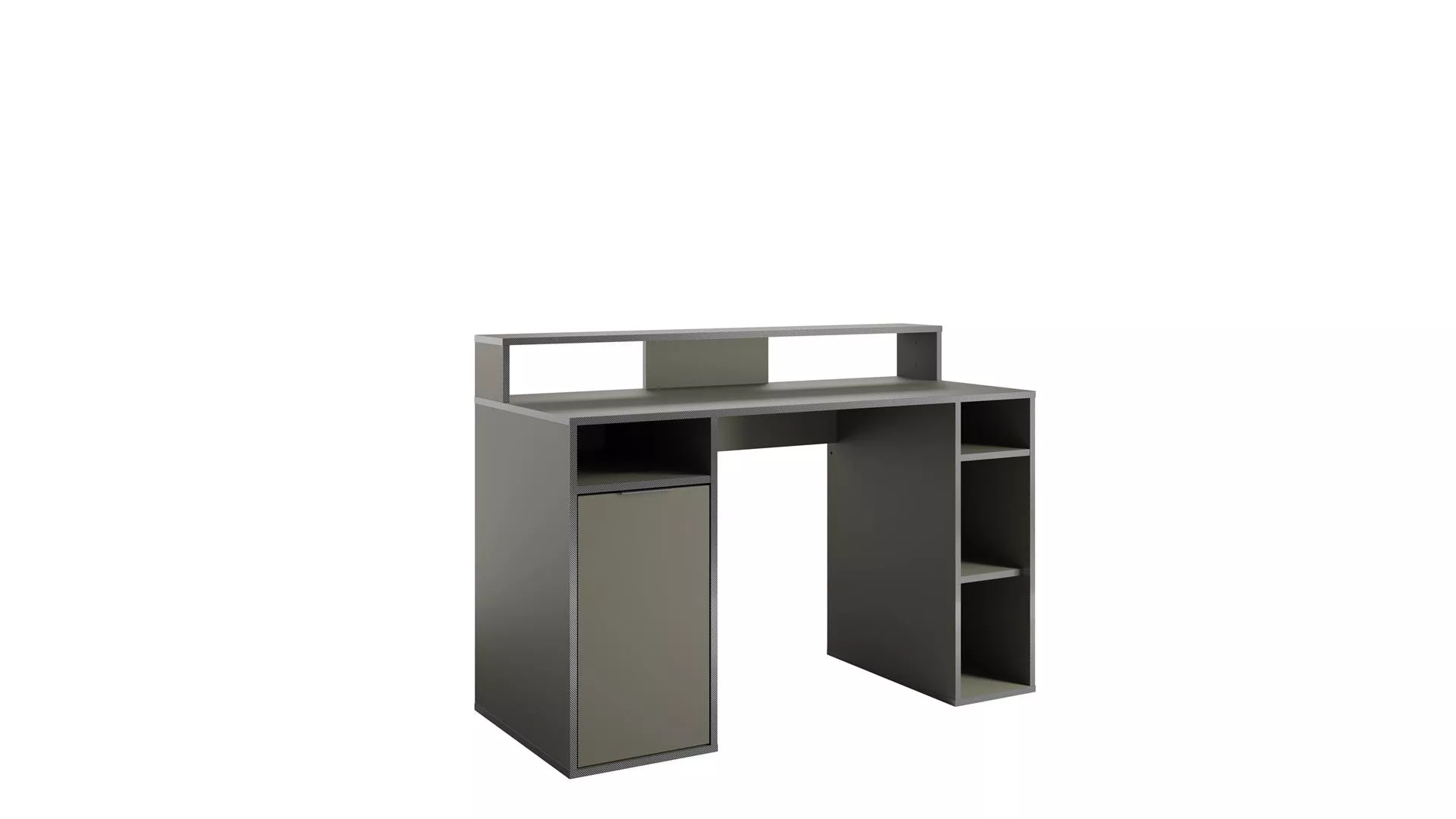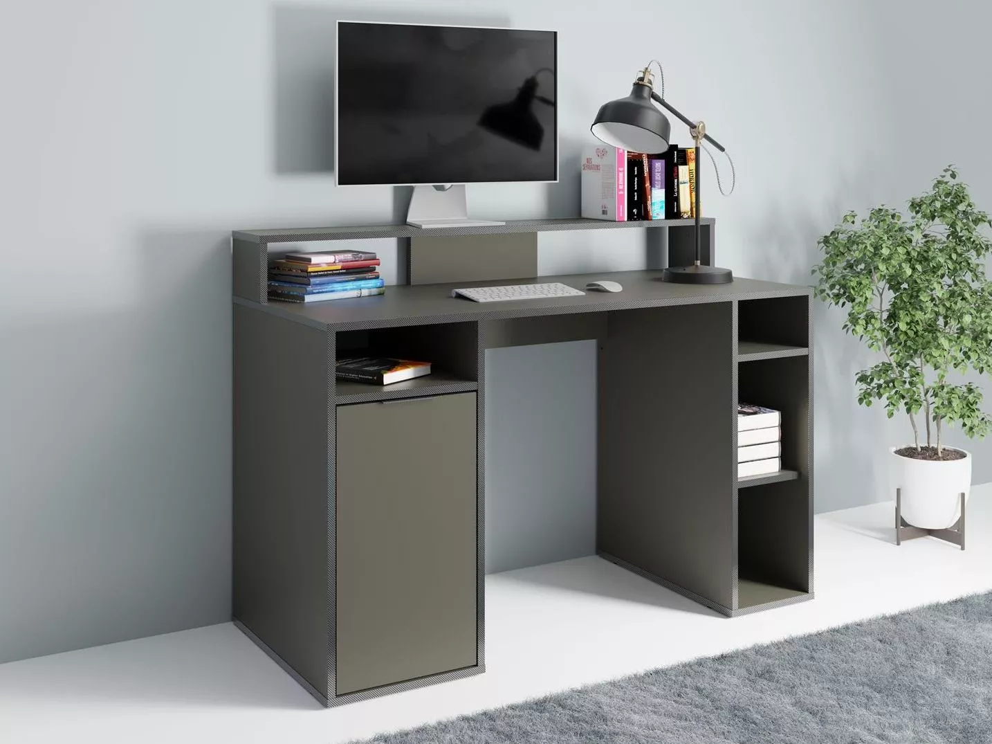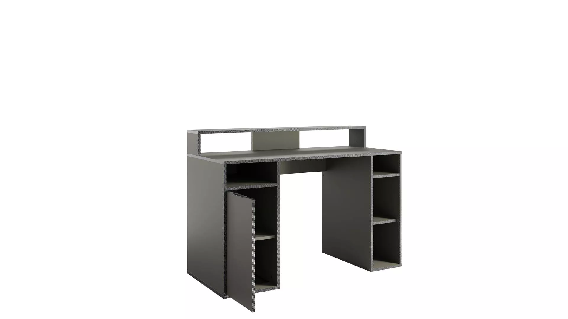 Pořiďte si stolek na počítač CURUMANI a propojte styl s funkčností. Elegantní grafitově šedý design doplňuje prostorná pracovní deska, skříňka s dvířky a praktické otevřené police. Vyvýšená plocha na monitor nebo dekorace navíc zajišťuje přehledný a pohodlný pracovní prostor.
