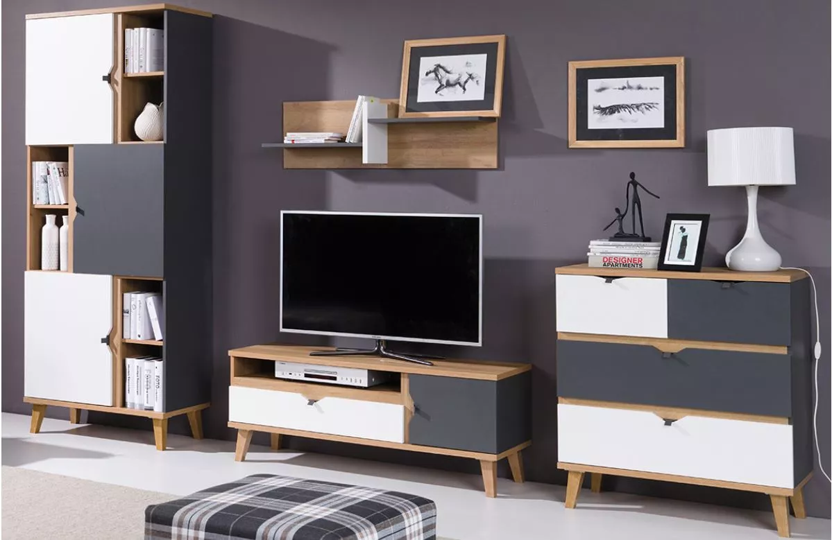 Závěsná polička LARNAKA - dub zlatý / bílá / grafit