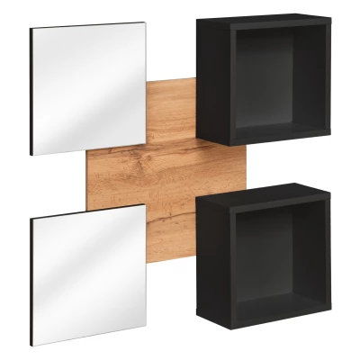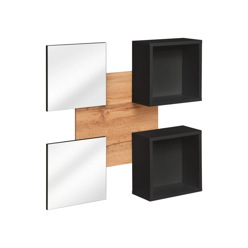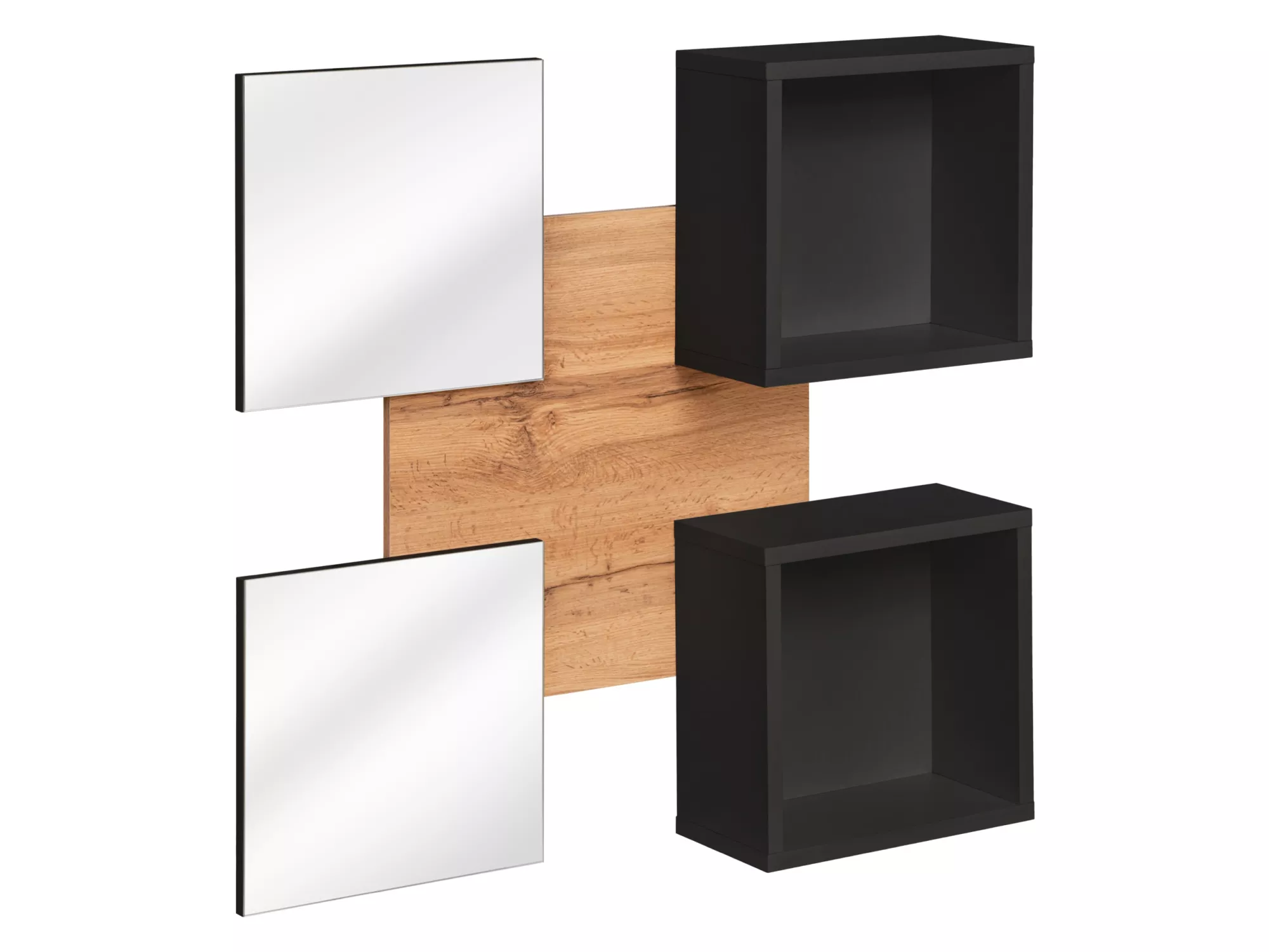 Policový panel IRA je kombinací zrcadel a polic. Tento stylový nástěnný panel je vybaven otevřenými přihrádkami na vystavení knih nebo dekorací.