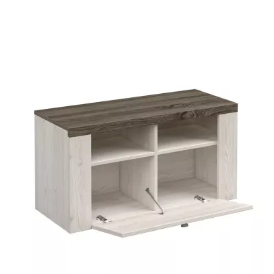 Nízký botník LEONOR je nepostradatelnou součástí každé předsíně či haly. Botník se skládá ze skříňky s výklopnými dvířky a 2 otevřených poliček.