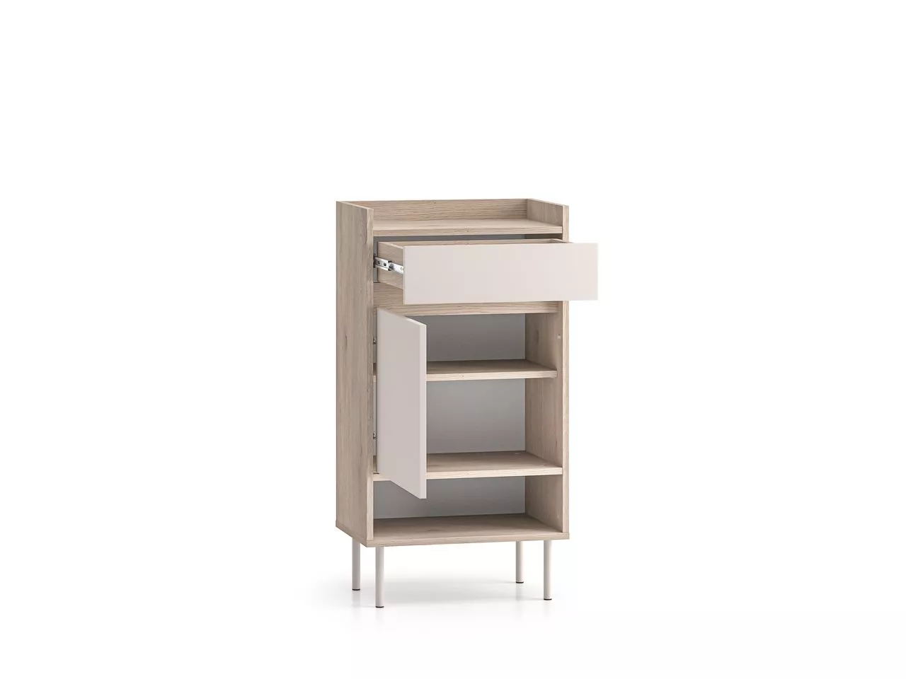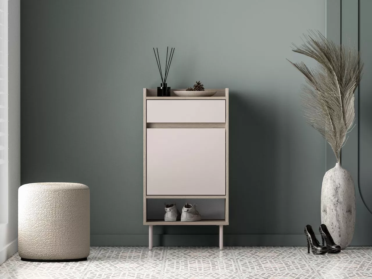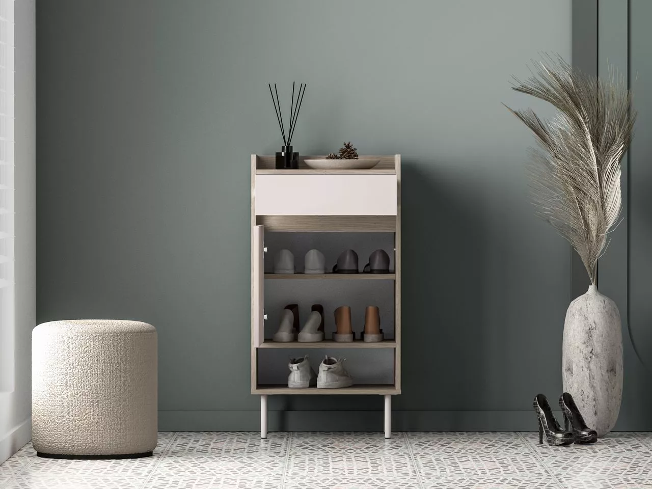 Botník s dvířky a šuplíkem RENATE nabízí dostatek místa pro uložení bot nebo jiných potřebných věcí. Disponuje také šuplíkem, kde si můžete schovat klíče nebo důležité dokumenty. Botník bude nezbytným kusem nábytku do každé předsíně nebo chodby.