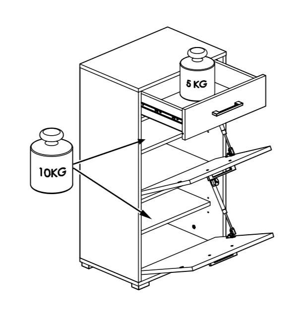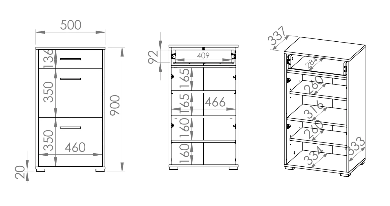 Úzký botník RUAN se hodí do všech moderních předsíní. Skládá se ze šuplíku a 3 polic.