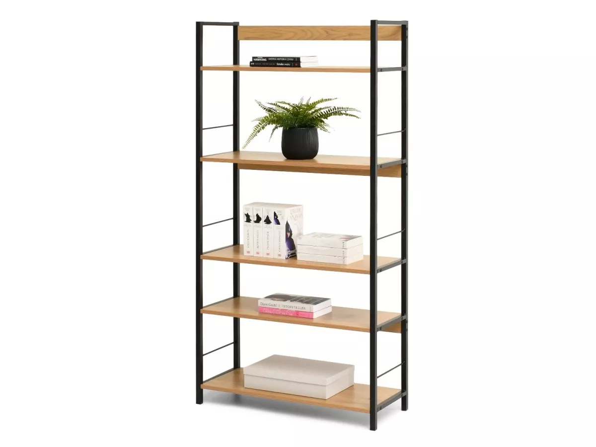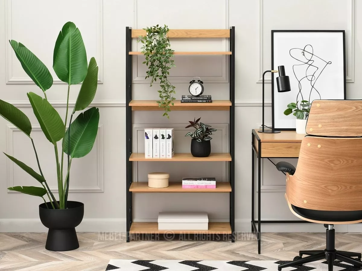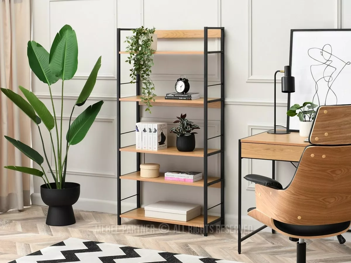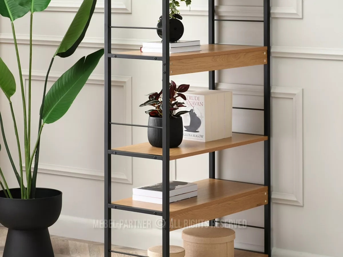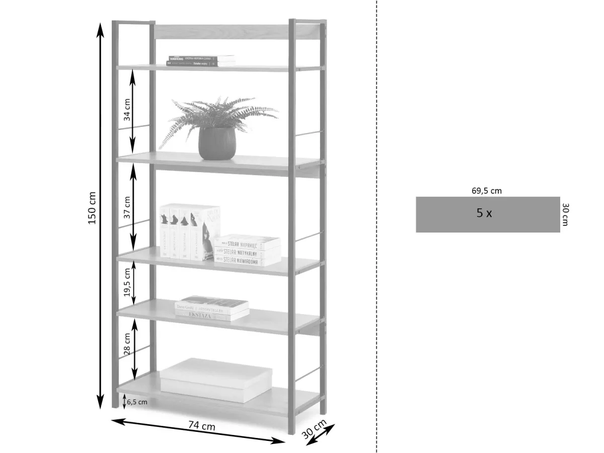 Policový regál AUSEL s kovovým rámem je výrazným prvkem, který přitahuje pozornost svou elegancí a industriálním charakterem. Regál navíc disponuje praktickými ochrannými podložkami na nožkách, aby nedocházelo k poškrábání podlah.