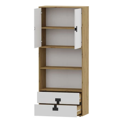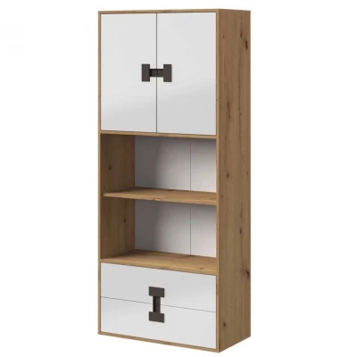 Vysoký regál BASHIRA 2 - dub / lesklá bílá