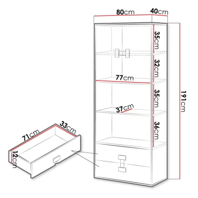 Vysoký regál BASHIRA 2 je vysoce funkčním řešením, které poskytuje dostatek úložného prostoru. Otevřené police jsou ideálním místem pro vystavení dekorací, zatímco uzavřená skříňka a šuplíky slouží k úschově studijního materiálu či oblečení.