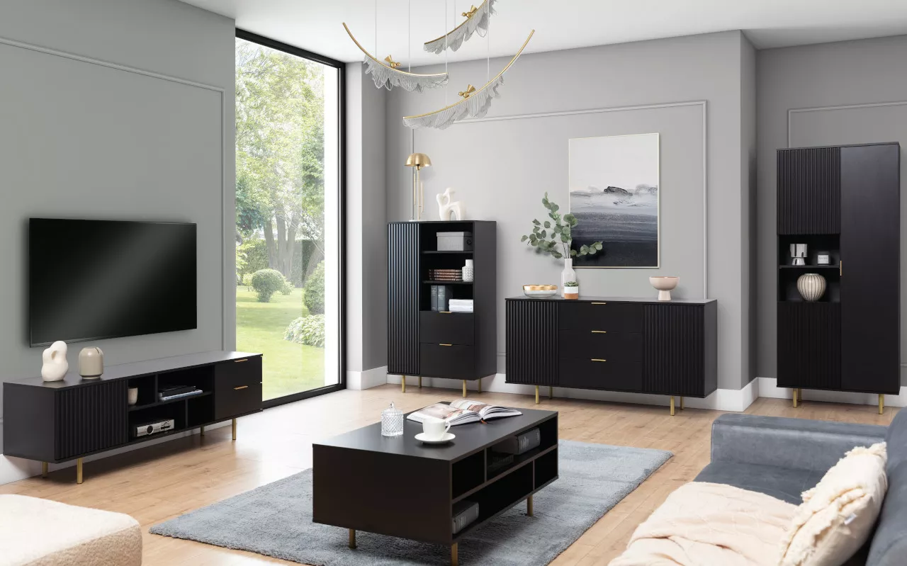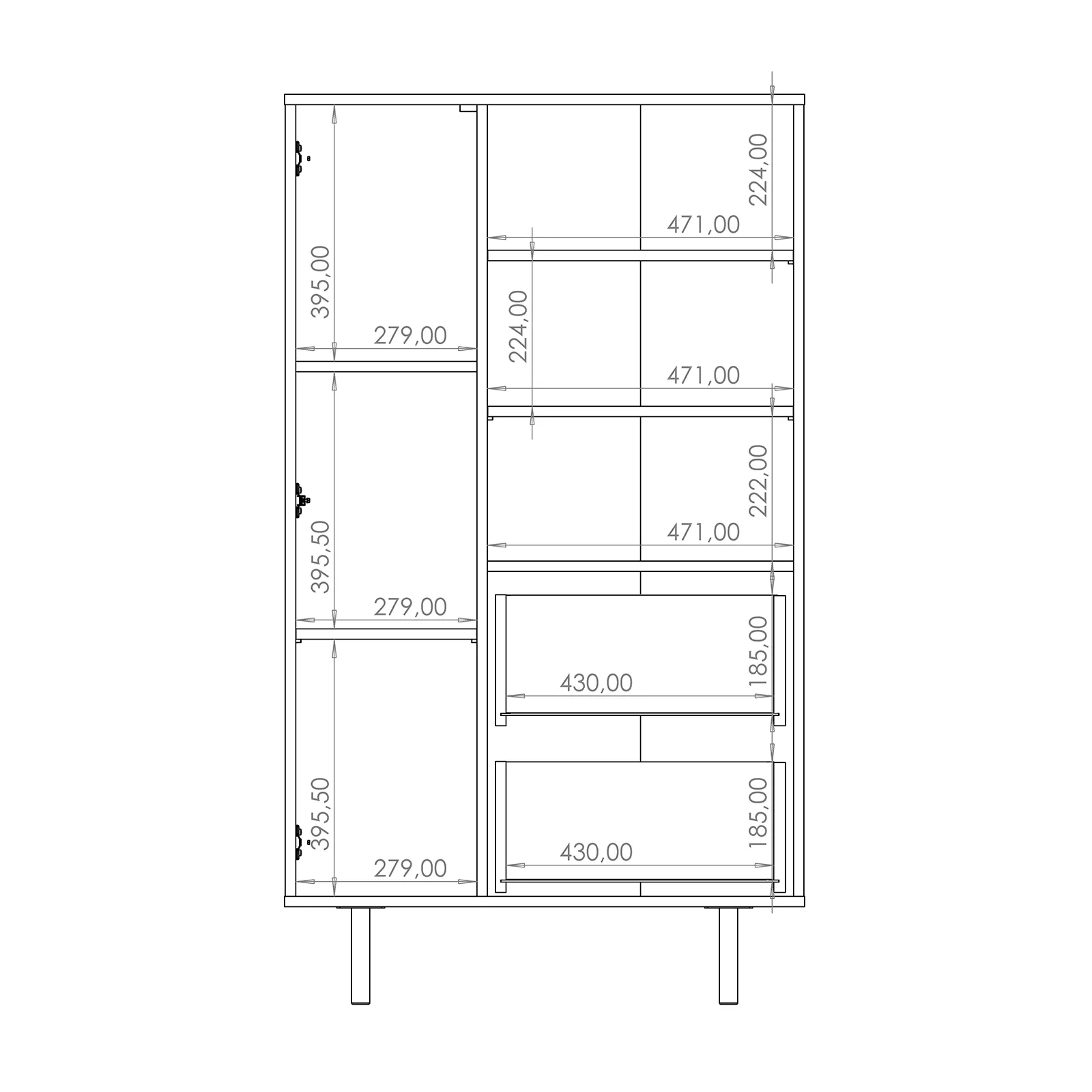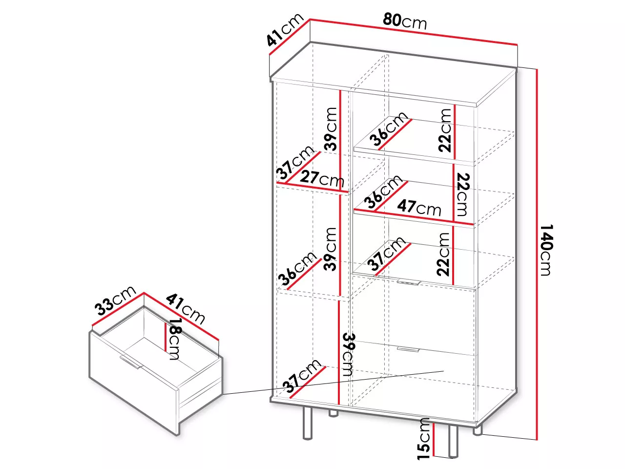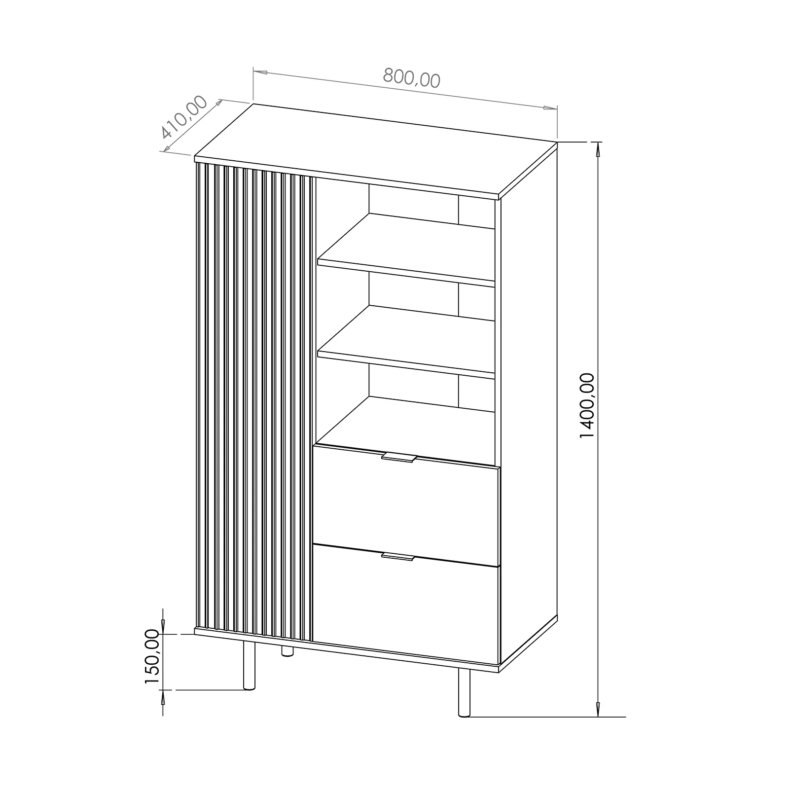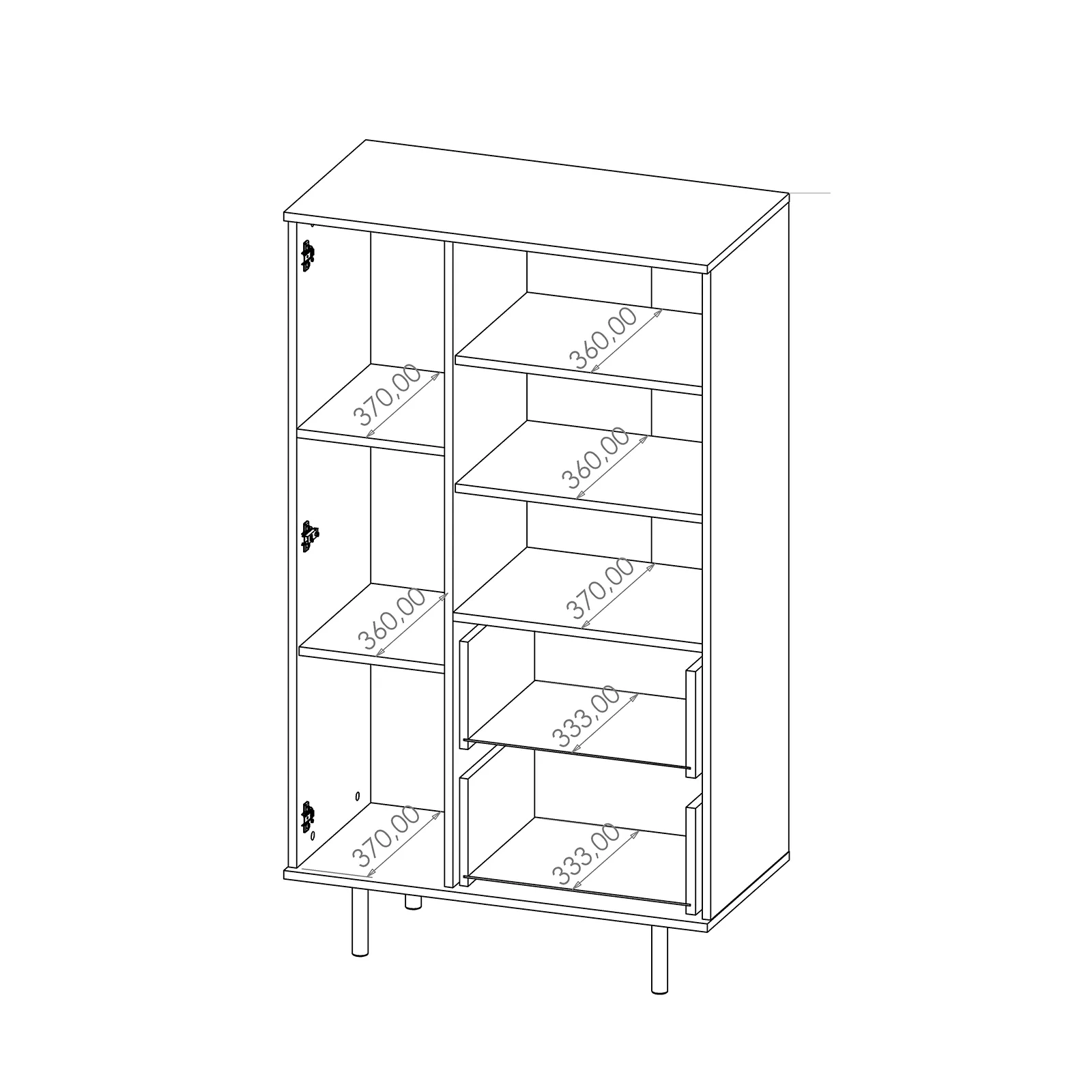 Regál se šuplíky STELLA poskytne úložný prostor a další místo pro vystavení vašich oblíbených dekorací a suvenýrů. Díky svému designu v podobě frézovaných dvířek a vysokých zlatých nohou dodá místnosti eleganci a charakter.
