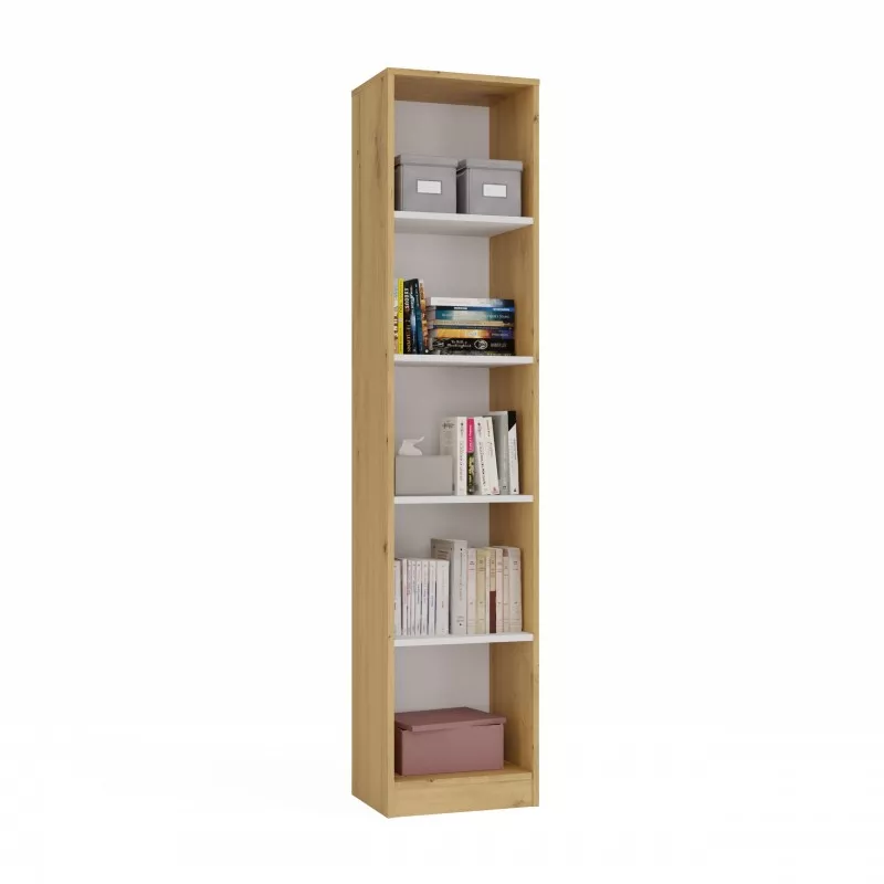 Úzká knihovna RAUNO - 40 cm, dub artisan / bílá