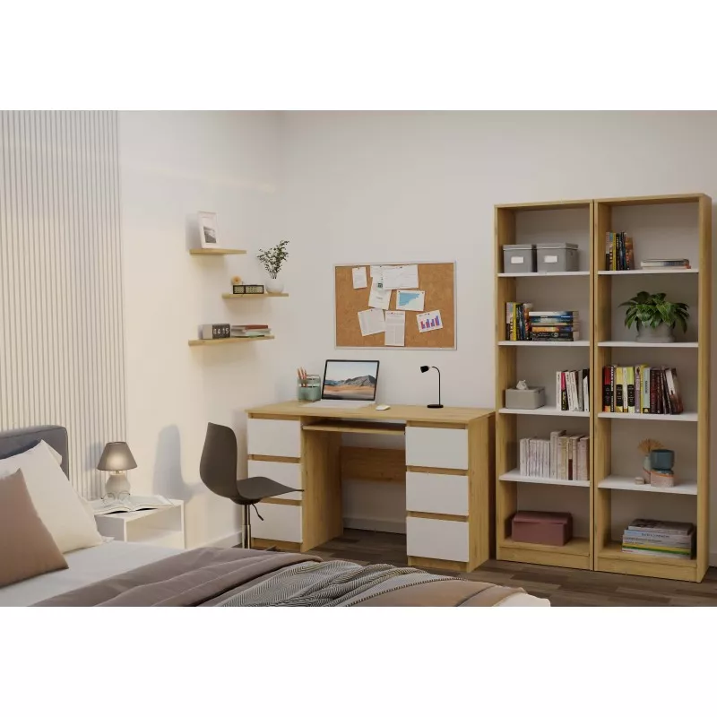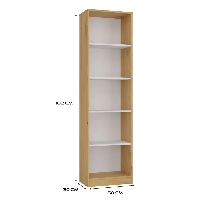 Úzká knihovna RAUNO - 50 cm, dub artisan / bílá
