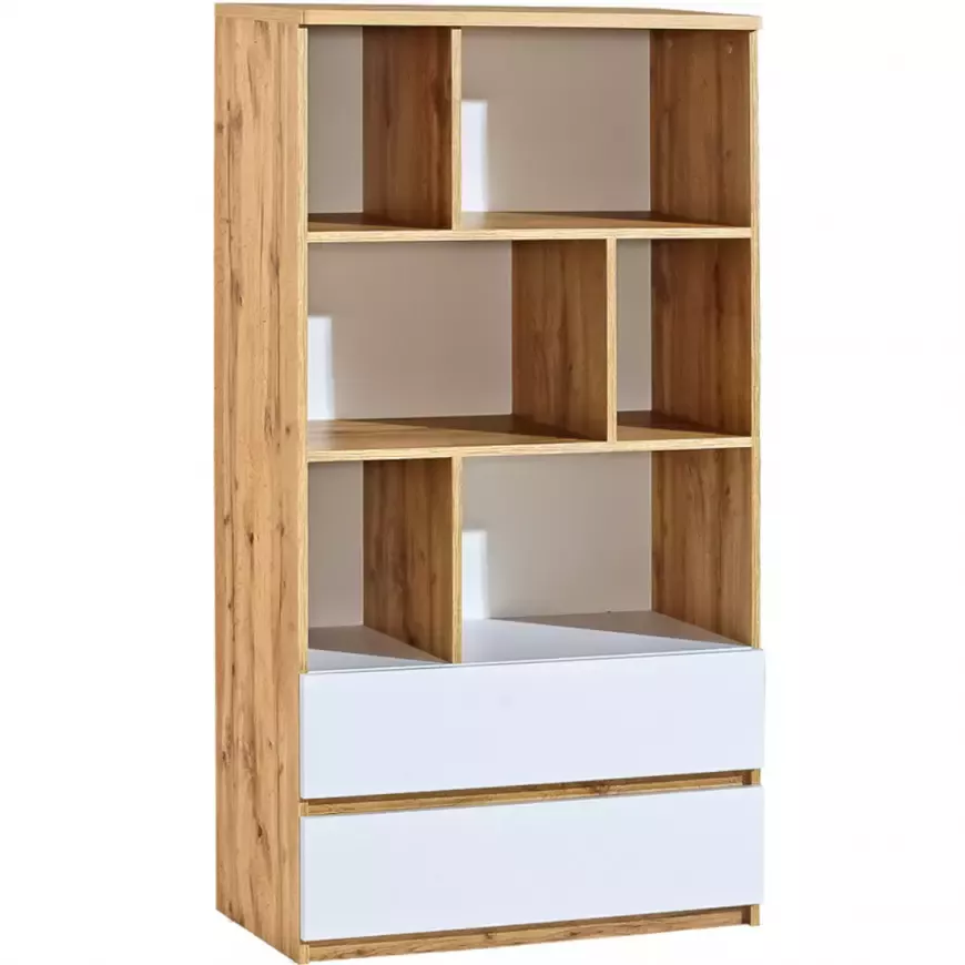 Vysoký regál se šuplíky CARYM - dub wotan / bílý