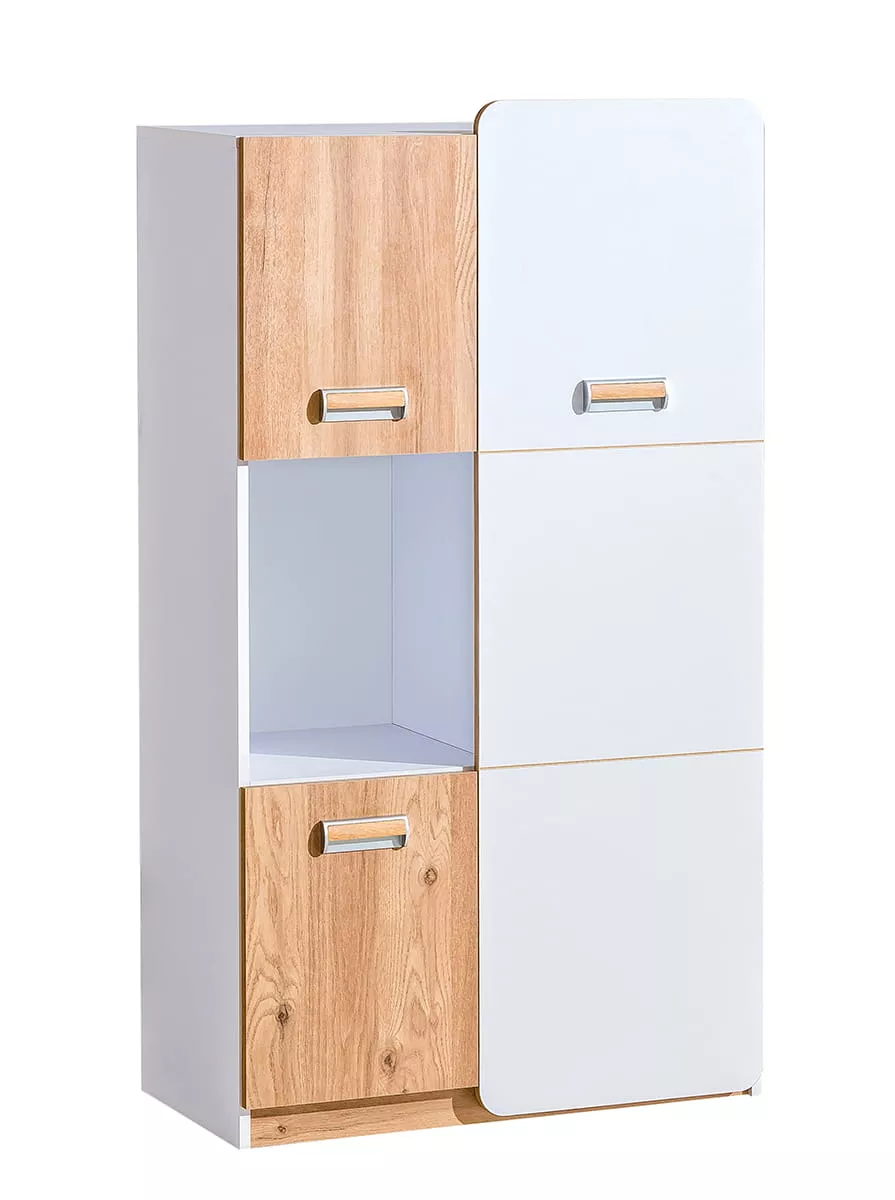 Regál s dvířky CEDAR je nezbytným kouskem nábytku do každého studentského nebo dětského pokoje. Disponuje 3 uzavřenými skříňkami a otevřenou přihrádkou. Svým provedením dokonale zapadne do skandinávského stylu.