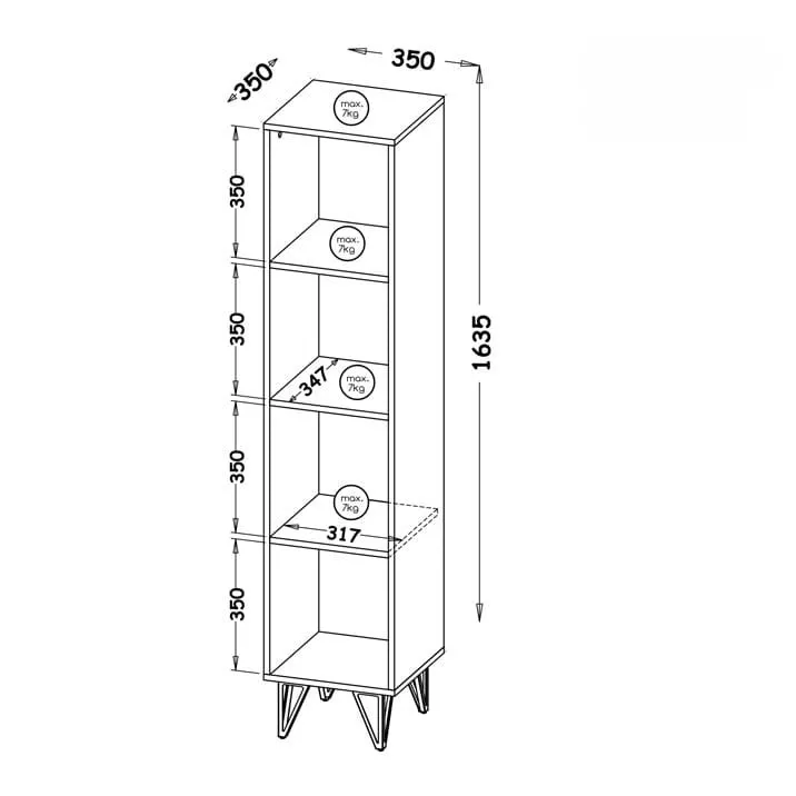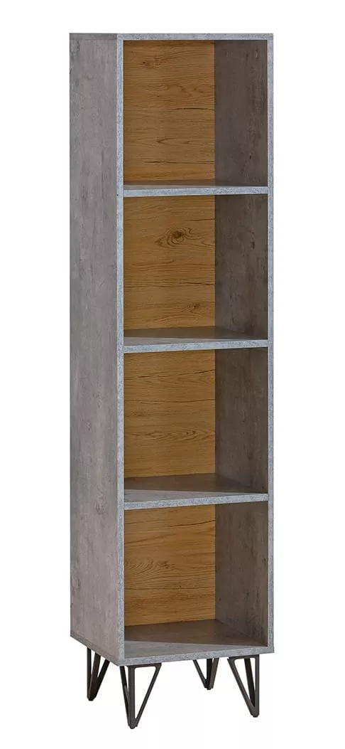Úzká knihovna CONOVER nabídne dostatek prostoru k vystavení knih i dekorací. Dekor dřeva v kombinaci s dekorem betonu vnese do každé místnosti nádech elegance. Stabilitu zajišťují vysoké kovové nožky.