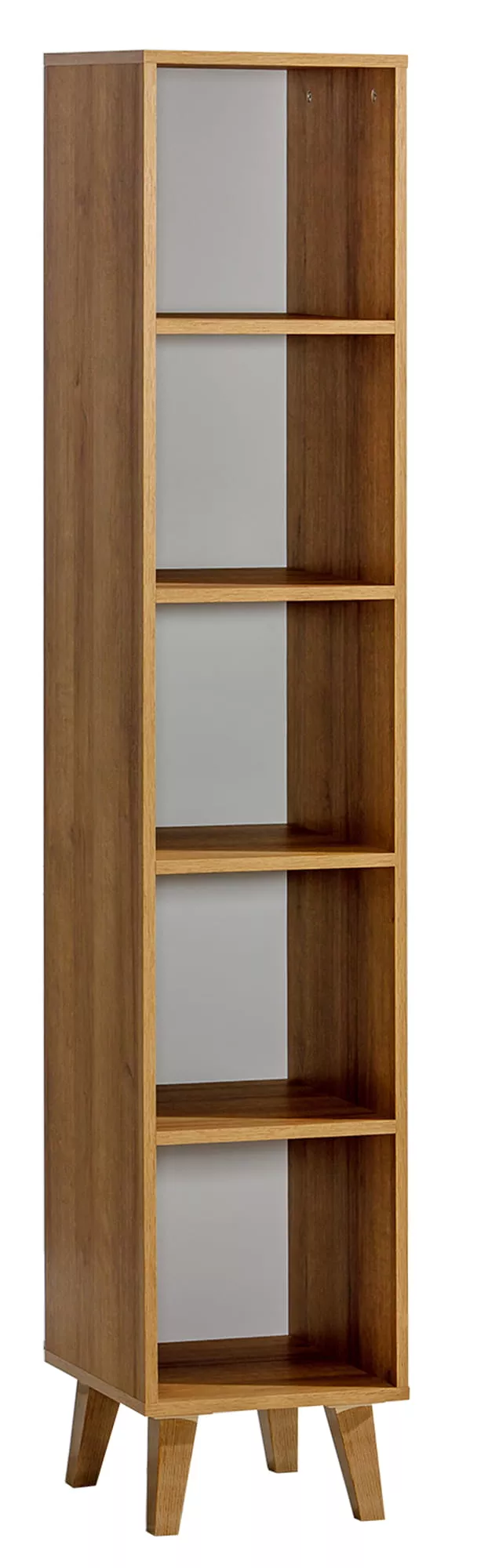 Úzká knihovna DOBSON nabídne dostatek prostoru k vystavení knih i dekorací. Dekor dřeva vnese do každé místnosti nádech přírody a elegance.