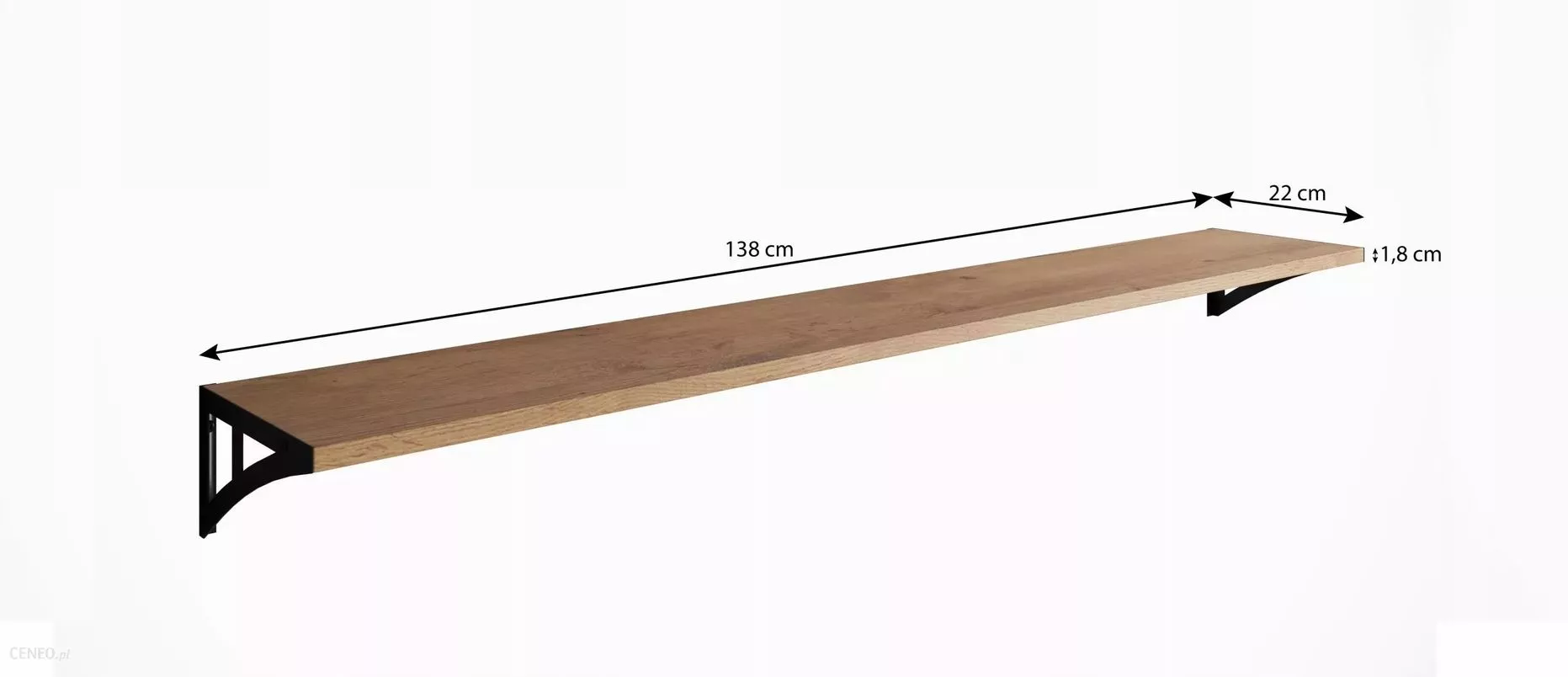 Police je vyrobena z kvalitní LTD desky. ABS hrany zajistí ochranu před možným mechanickým poškozením a vlhkostí. Kombinace přírodního dekoru a černého kovu činní z poličky atraktivní doplněk. Variabilita konzolí umožňuje zavěsit polici oběma směry.