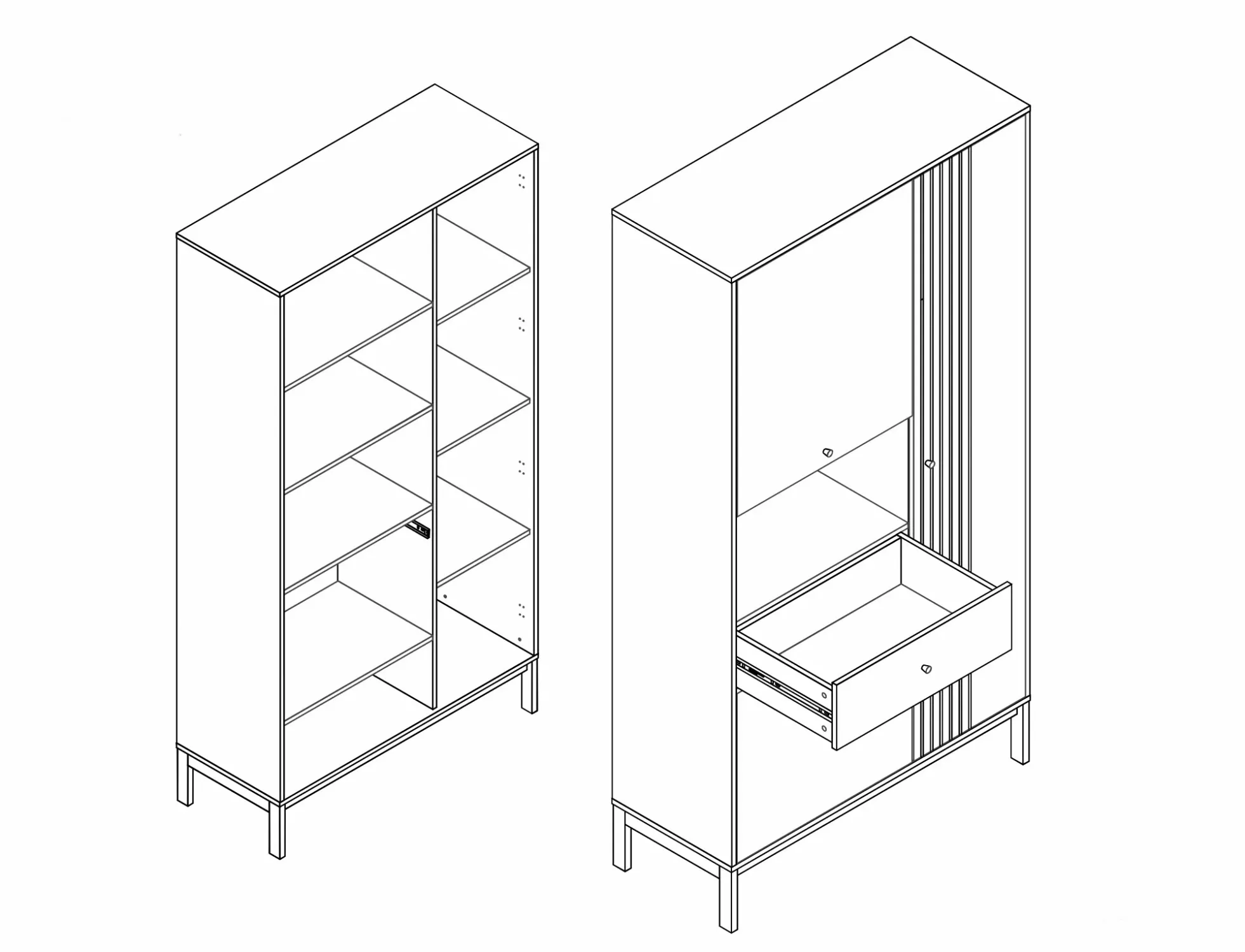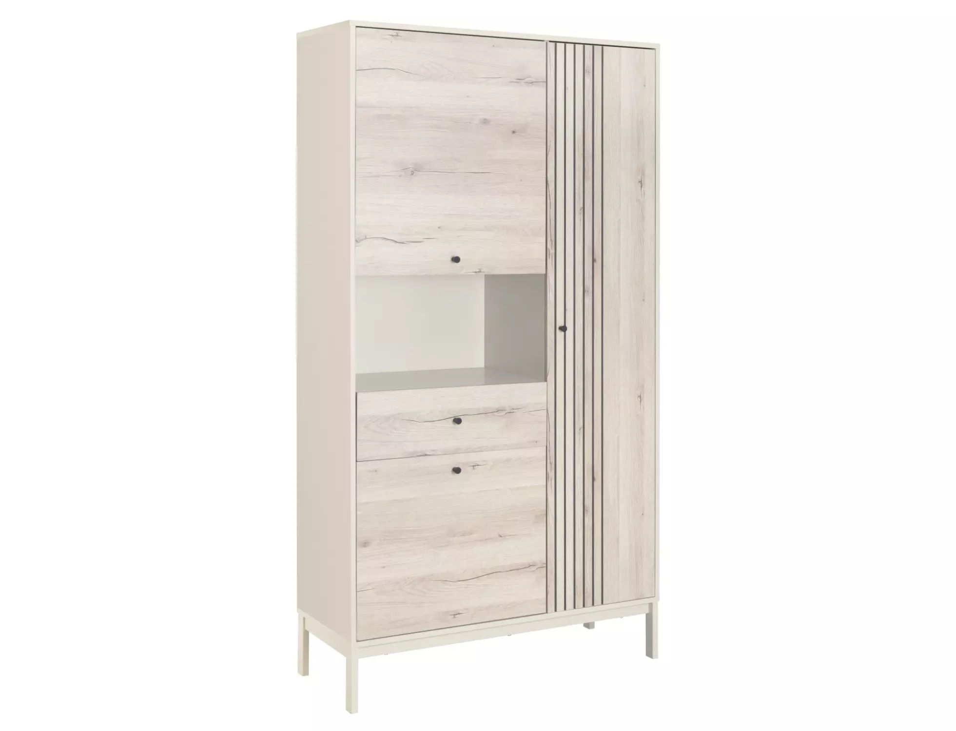 Policový regál DRAGAN nabízí dostatek prostoru k uložení ubrusů, dokumentů nebo k vystavení dekorací. Disponuje šuplíkem, 6 prostornými policemi za uzavřenými dvířky a 1 otevřenou přihrádkou. Díky svému provedení a designu skvěle zapadne do skandinávských interiérů.