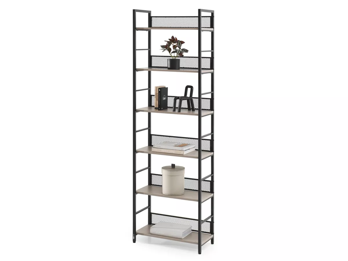Policový regál JANKO se díky možnosti nastavení výšky nožek dokonale přizpůsobí jakémukoli prostoru. Disponuje 6 prostornými policemi.