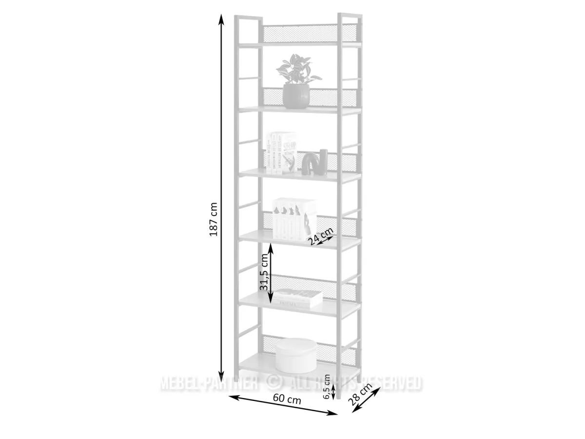Policový regál JANKO se díky možnosti nastavení výšky nožek dokonale přizpůsobí jakémukoli prostoru. Disponuje 6 prostornými policemi.