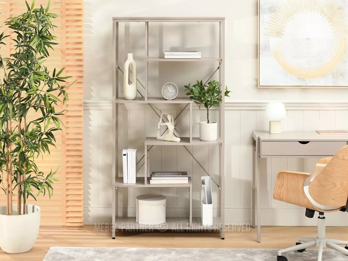 Policový regál GRIGORE svým nepravidelným uspořádáním poliček bude dokonale ladit ve všech moderních interiérech. Nastavitelné nožičky umožňují přizpůsobit jeho výšku různým potřebám a požadavkům. Pevná a stabilní konstrukce regálu zaručuje dlouhodobé používání.