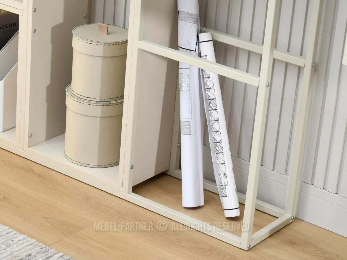Policový regál GAREK se svým designem skvěle hodí do industriálních, loftových i moderních interiérů. Je vybaven plstěnými podložkami na spodní straně konstrukce, což chrání podlahu před poškrábáním.