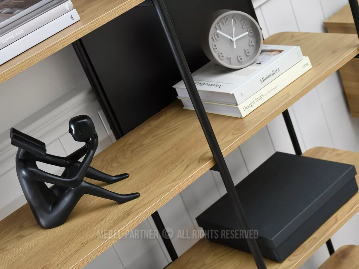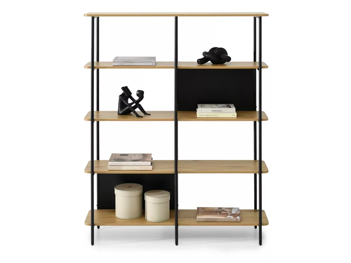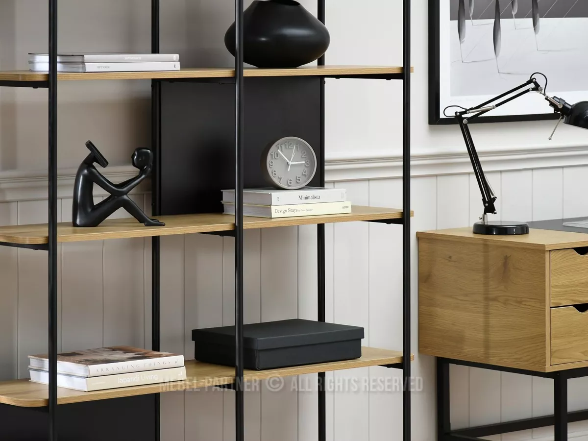 Široký policový regál ELEMER svým zpracováním zapadne do všech industriálních, loftových a moderních interiérů. Disponuje 4 praktickými policemi pro vystavení dekorací, knih nebo fotografií.