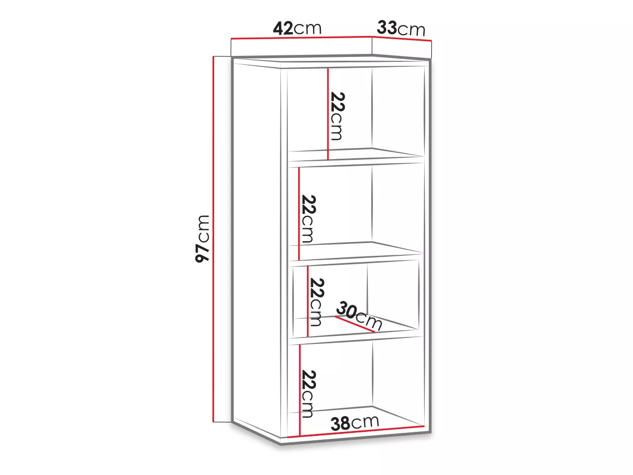 Knihovna Jill se vyznačuje mimořádným stylem. Elegantní barvy jsou kombinací vzorů dřeva s černou barvou. Za funkčnost regálu jsou zodpovědné prostorné police. S uspořádáním v různých výškách poskytují mnoho prostoru pro knihy a ostatní osobní věci. Černá zadní část nábytku je módním pozadím pro doplňky na policích.