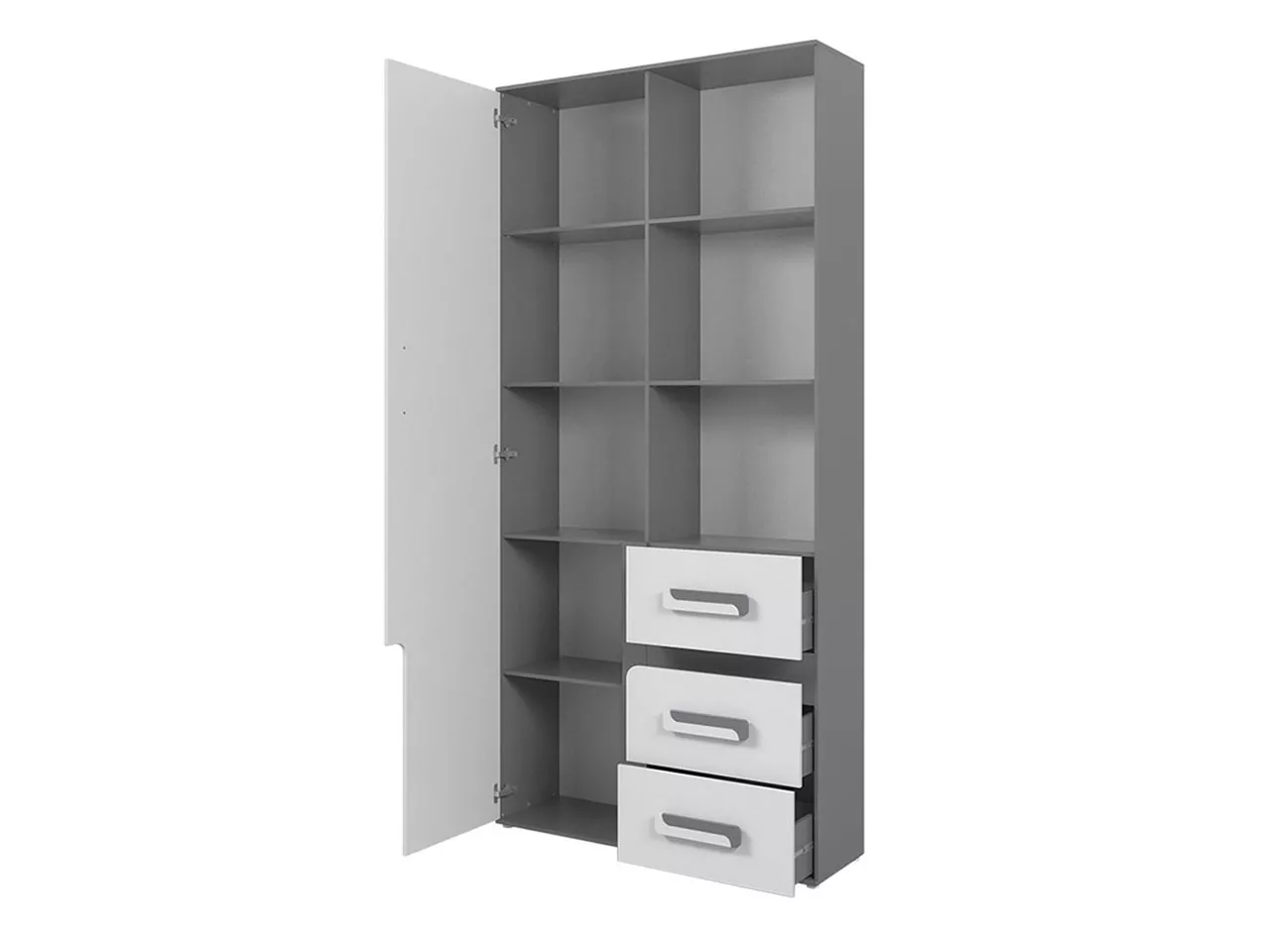 Skříň do obývacího pokoje CHOCHO je funkční model vhodný do moderního interiéru. Skříň je vybavena hlubokými policemi, uzavřenou skříňkou a zásuvkami. Otevřené police mohou sloužit k vystavení knih, dekorací, porcelánu nebo suvenýrů. Uzavřená část skříně může sloužit k úschově ložního prádla, nádobí nebo sezónního oblečení.