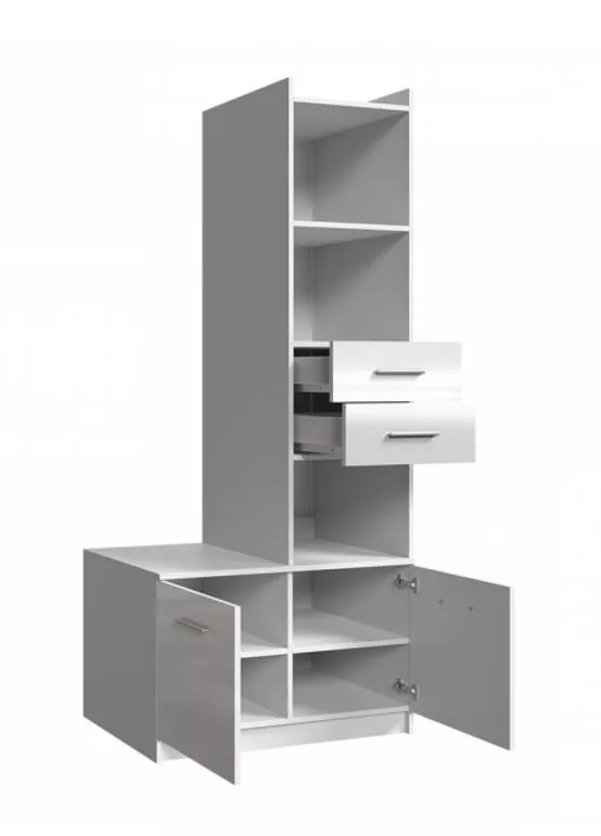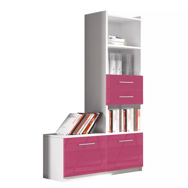 GORT je vysoký regál, který dokonale vybaví interiér dětského nebo studentského pokoje. Regál je vybaven prostornými policemi umožňujícími oddělení knih, jakož i skříňky a zásuvky na praktické příslušenství. Konstrukce regálu byla vyrobena z vysoké a odolné DTD ve spojení s předními díly z lesklého MDF materiálu.