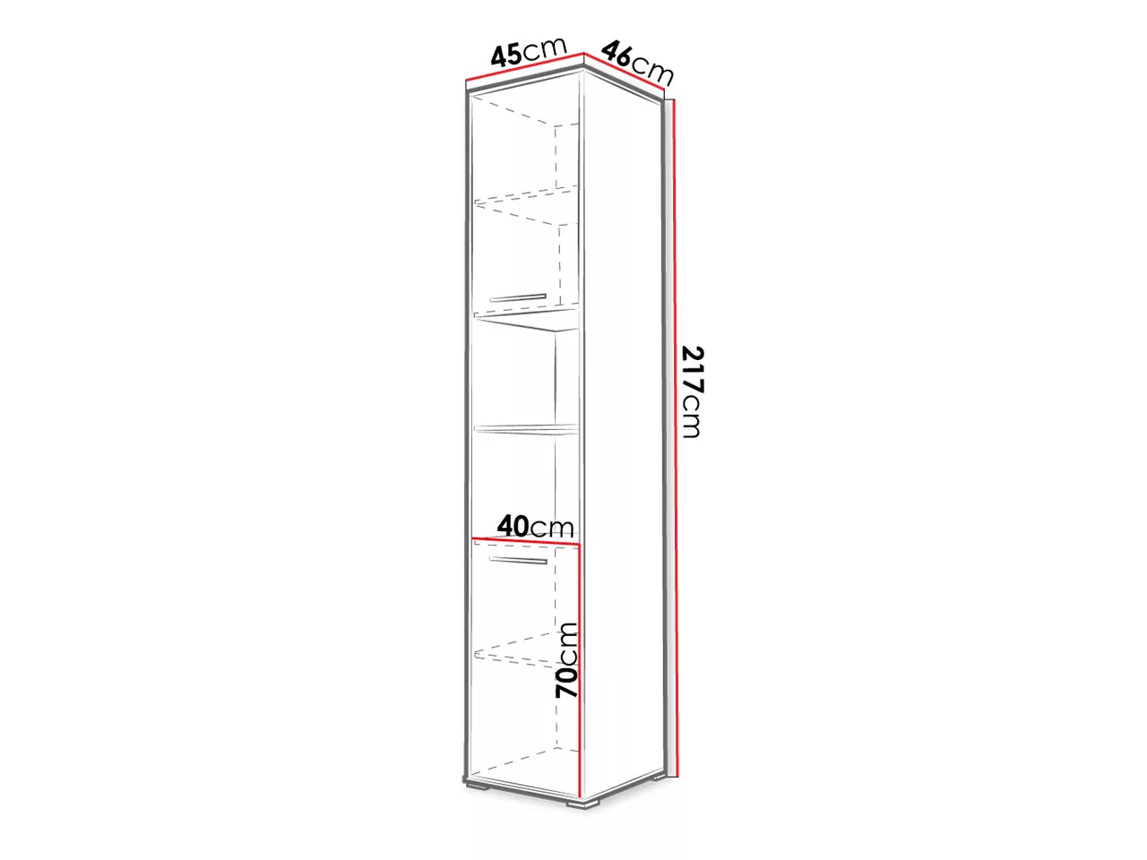 Vysoká skříň s dvířky je určená k doplnění vertikálních sklápěcích postelí CELENA, kde poskytuje více potřebného úložného prostoru. Skříň je vybavena hlubokými policemi pro úschovu oblečení. Otevřené poličky mohou sloužit k odložení knihy čtené před spaním či k vystavení dekorací.