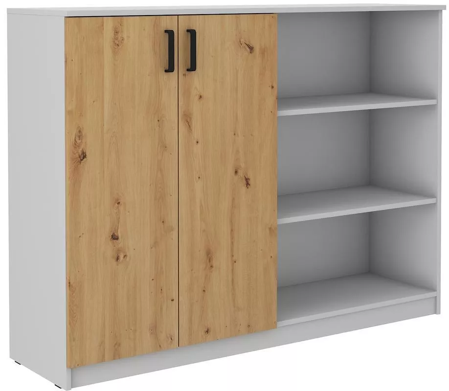 Potřebujete zařídit kancelář nebo domácí pracovnu? Kolekce kancelářského nábytku MABAKA díky rozmanitosti prvků a dekorů nabízí širokou škálu možností, jak si svůj pracovní prostor vybavit tak, aby byl účelný a praktický. Je vyrobena v jednoduchém designu, takže váš pracovní prostor bude působit vzdušně a Vy se v něm budete cítit příjemně. Policová skříňka s regálem je velmi praktická a pojme vše potřebné.