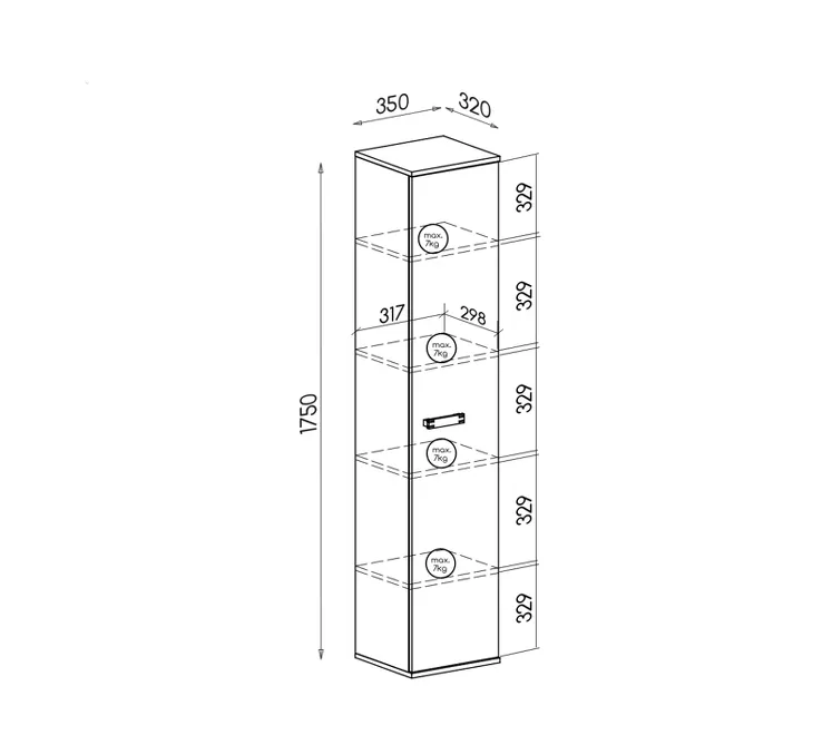 Úzká policová skříň BENSON je charakteristická svým dekorem dubu canyon. Disponuje 4 policemi pro vystavení uložení všeho potřebného. Je vyrobena z kvalitních materiálů, takže vám bude sloužit mnoho let.