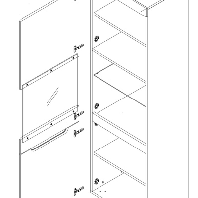 Úzká vitrína s horními prosklenými dvířky a skleněnou policí je spojením krásy a funkčnosti. Poskytuje optimální množství úložného prostoru pro vaše oblíbené