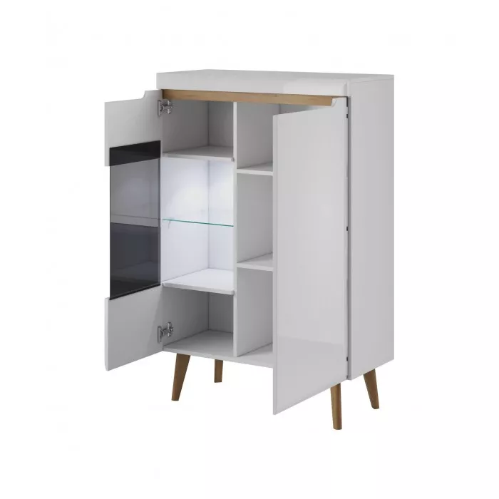 Vitrína s horními prosklenými dvířky a skleněnou policí je spojením krásy a funkčnosti. Poskytuje optimální množství úložného prostoru pro vaše oblíbené