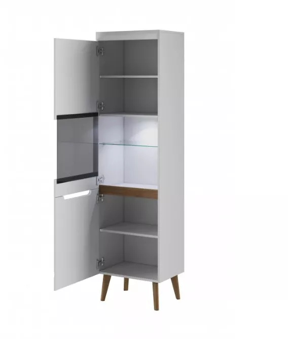 VÝPRODEJ - Prosklená vitrína NATHANIEL - bílá lesk / dub riviera
