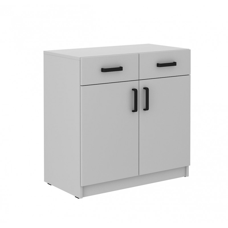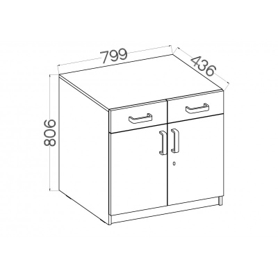 Praktická dvoudveřová skříňka se šuplíky je mimořádně funkčním kusem do kanceláře či pracovny. Do zásuvek můžete schovat drobnosti jako psací potřeby a police využijete k odkládání dokumentů, které potebujete mít neustále po ruce. Spodní police pak budou perfektním místem pro pořadače.