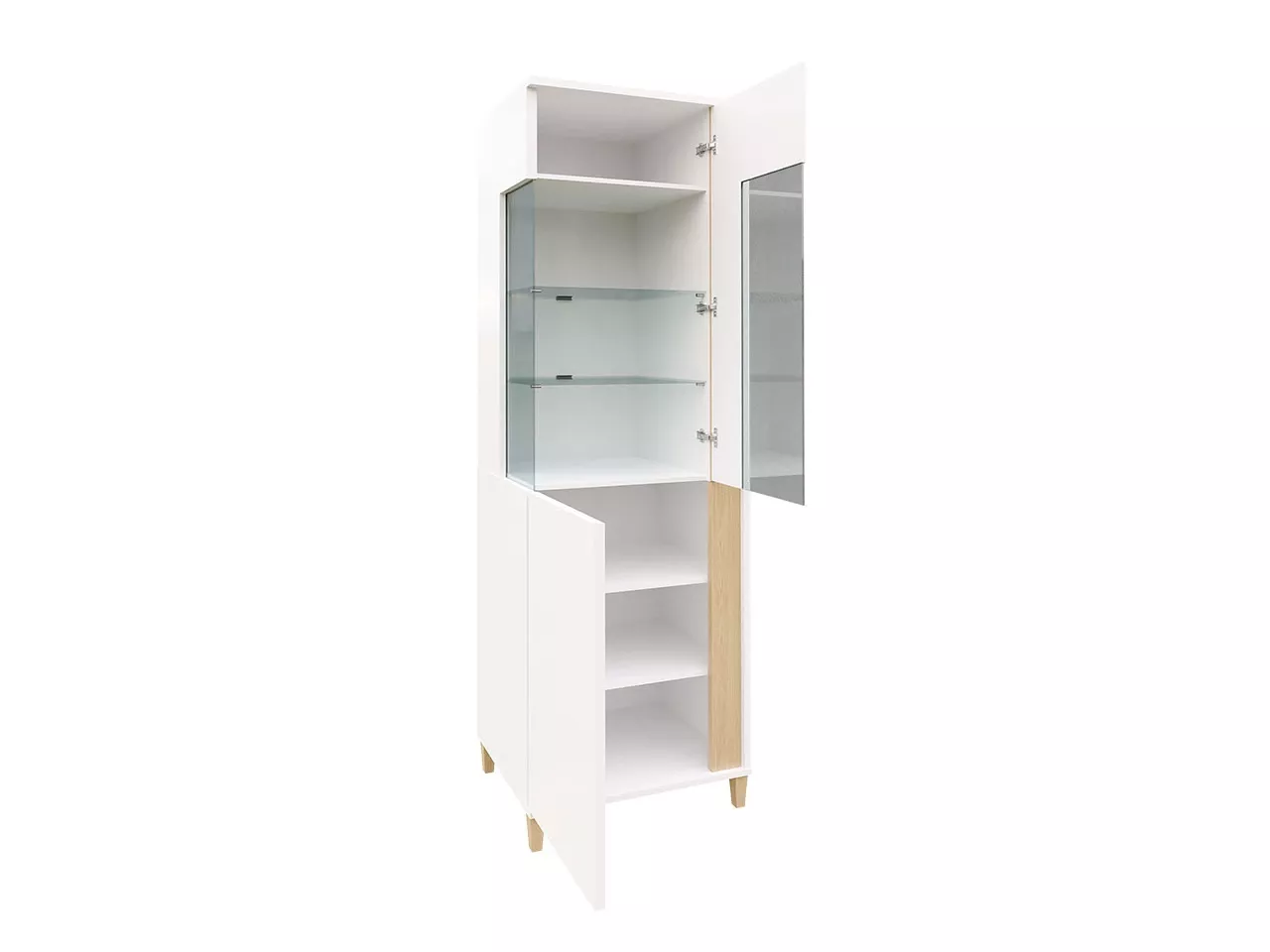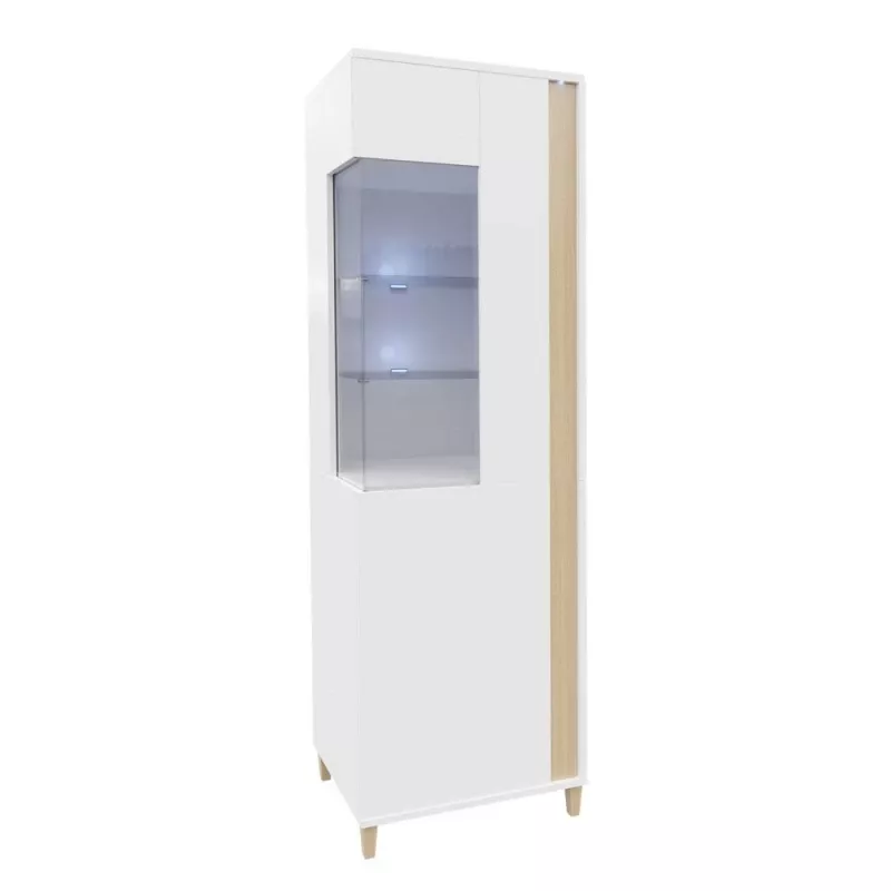 Úzká vitrína do obývacího pokoje ANINA - šířka 50 cm, bílá / dub wotan
