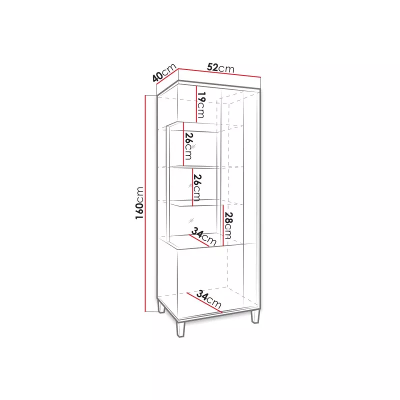 Vitrína do obývacího pokoje ANINA - šířka 50 cm, bílá / černá