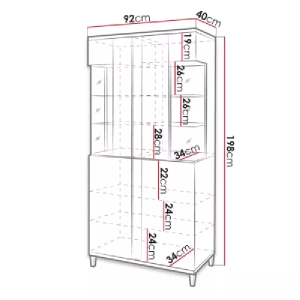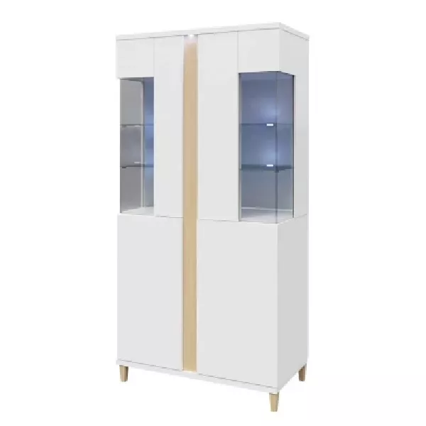 Vysoká vitrína s LED osvětlením ANINA zkrášlí moderní uspořádání obývacího pokoje. Uzavřená část slouží k uložení například ložního prádla. Prosklená část vitríny slouží k vystavení suvenýrů nebo sklenic. Skleněné police jsou navíc vybaveny LED osvětlením, které vdechne do celé místnosti svěží vzduch. Další výhodou je, že je vitrína vybavena technologií "PUSH TO OPEN". Tento inovativní systém otevírání spočívá v mírném stlačení předních částí.