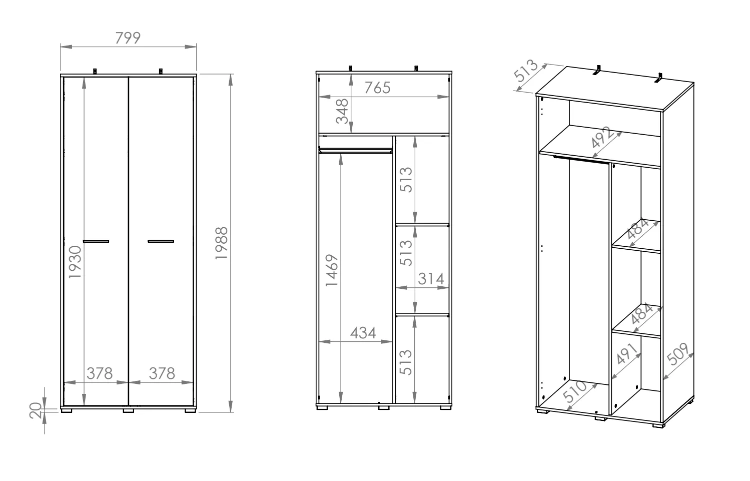 Dvoudveřová předsíňová skříň RUAN se hodí do všech moderních předsíní. Nabízí 3 police a šatní tyč. Díky hranám ABS se skříň stává odolnější.