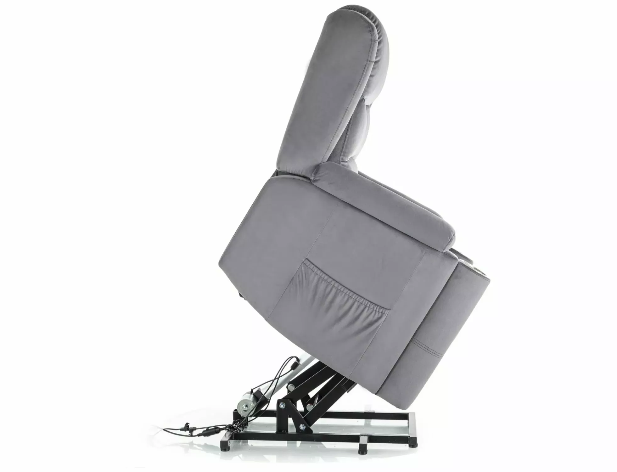 Elektrické polohovací křeslo GUAPO je dokonalým řešením pro vytvoření pohodlné relaxační zóny. Křeslo se vyjímá dekorativním prošíváním na čalounění a stabilní kovovou základnou. Držák na nápoje a praktická kapsa na pravé straně zvyšují funkčnost nábytku. Funkce vertikalizace vám navíc usnadní vstávání, což ocení nejen senioři, ale i osoby s omezenou pohyblivostí.