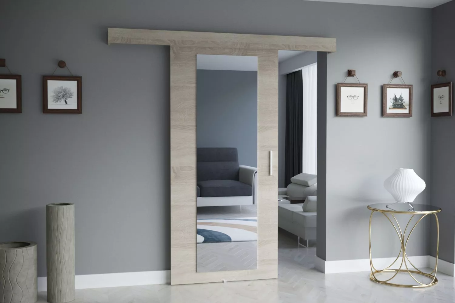 VÝPRODEJ - Posuvné dveře SALOME se zrcadlem - Sonoma