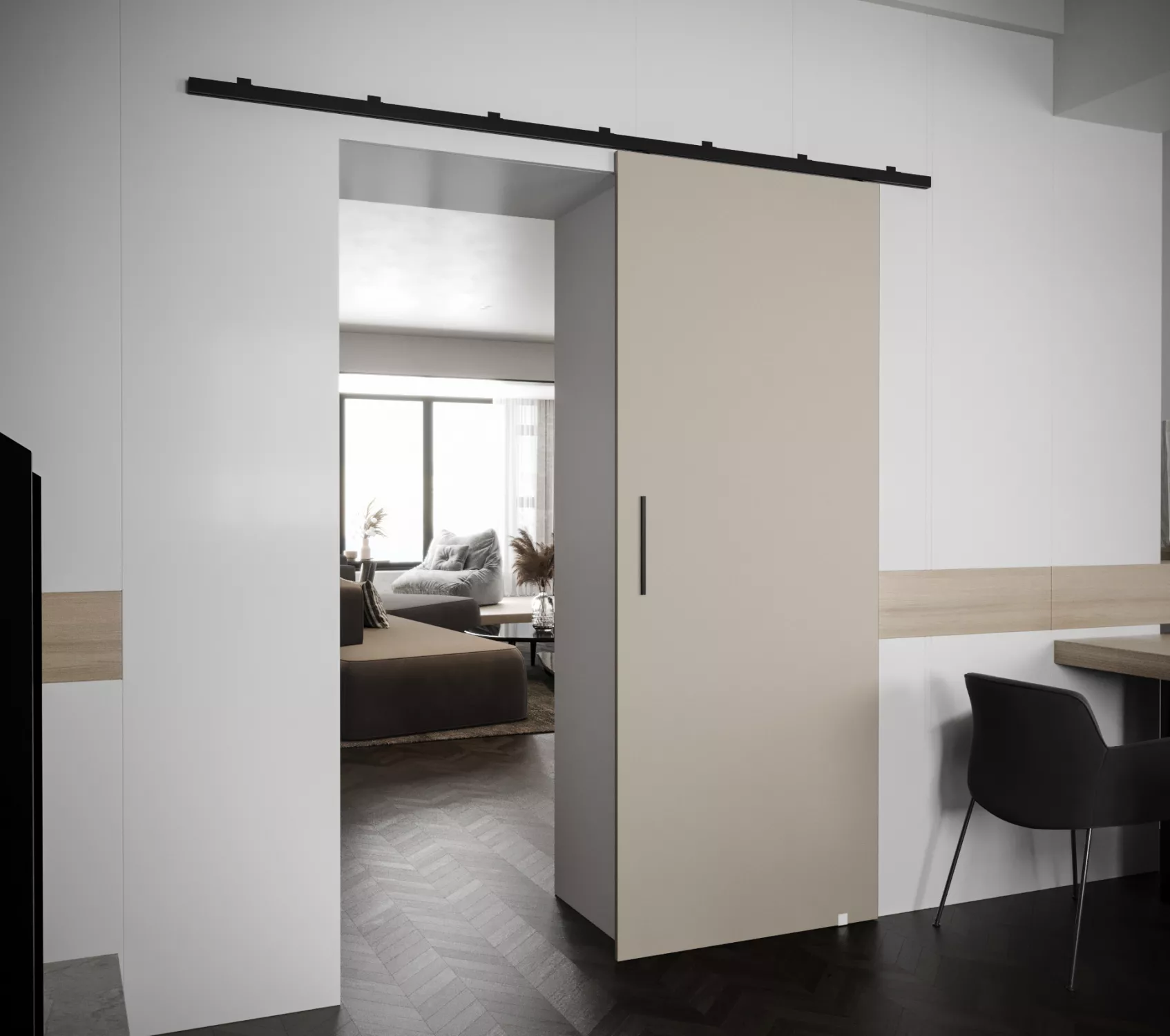 Posuvné dveře PERDITA se hodí do každé místnosti, kde ušetří místo a poslouží jako dekorační prvek. Kvalitu zpracování podtrhuje kovový posuvný systém.