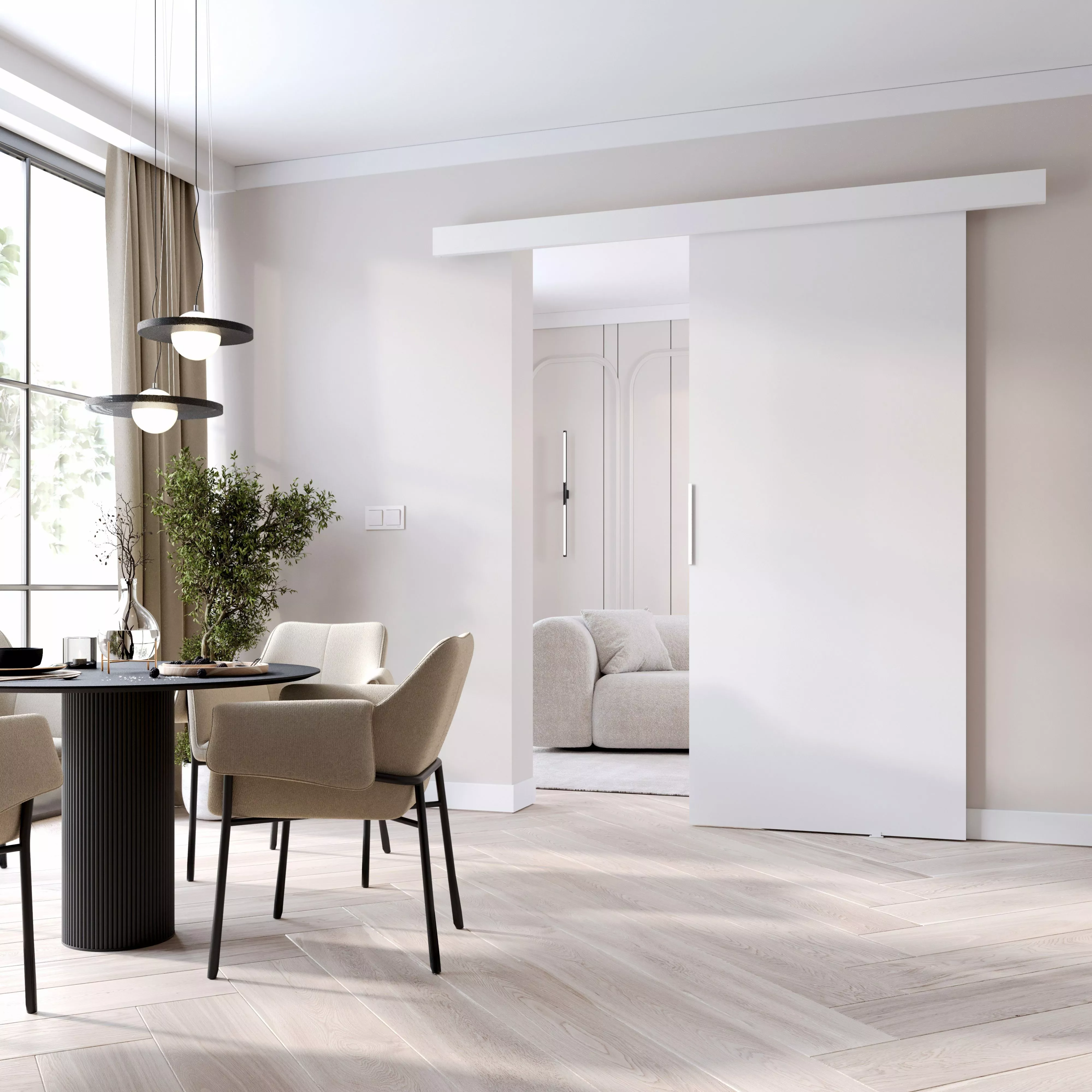 Posuvné dveře na stěnu BARRET 1 můžete je využít jako oddělení 2 místností, nebo jako dveře do skříně či šatny. Použitý posuvný systém zaručuje tichý chod a bezporuchový provoz po mnoho let.