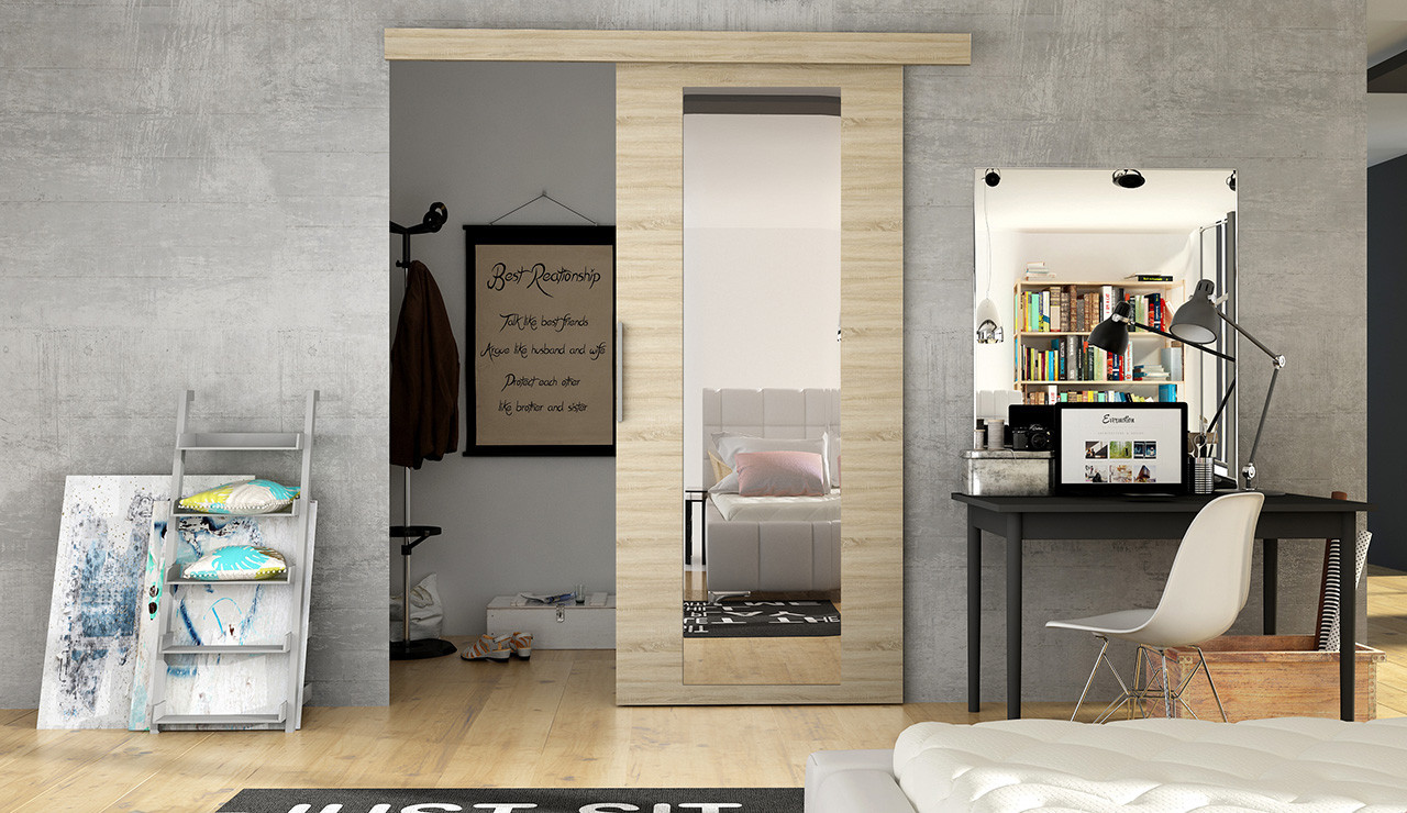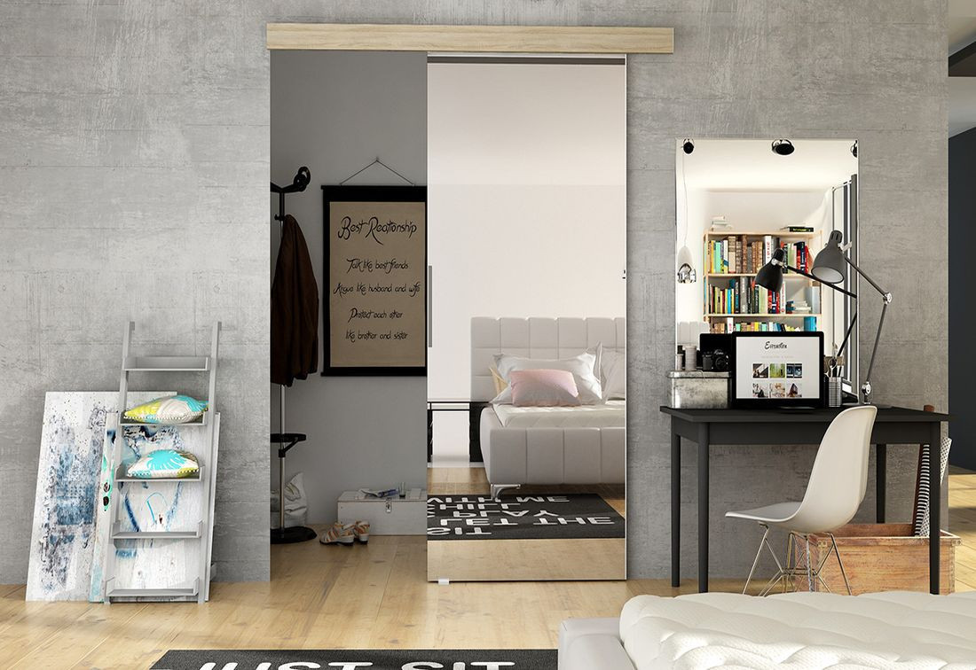 Posuvné interiérové dveře BARRET 2 zajišťují soukromí bez časově náročné instalace. Dveře lze využít jako oddělení 2 místností nebo jako dveře do skříně či šatny. Dveře zdobí dekorativní stříbrné proužky.