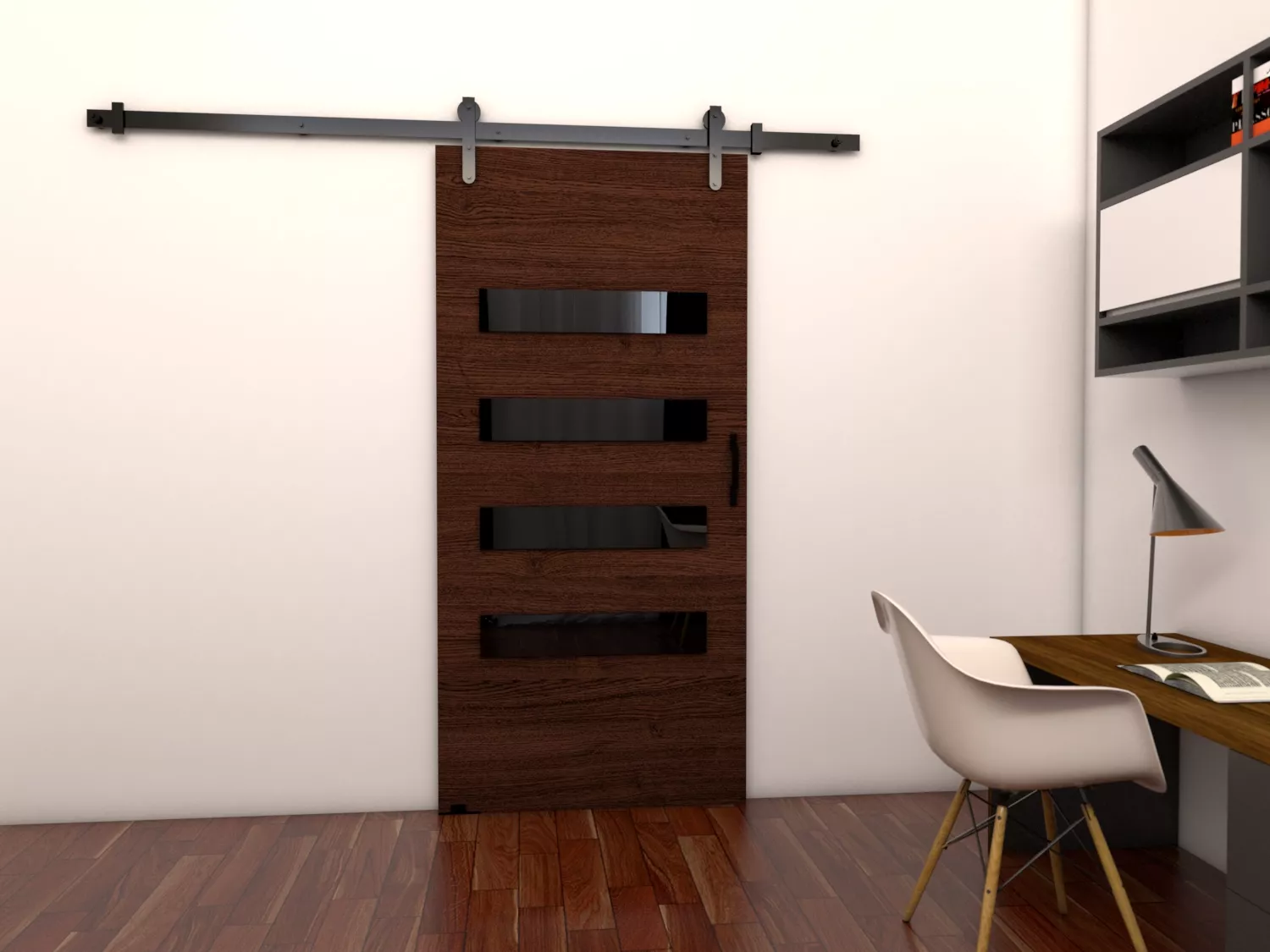 Posuvné interiérové dveře BUSHLAND 6 se pyšní loftovým designem a jsou perfektním řešením pro úsporu místa. Můžete je využít jako klasický vchod do další místnosti, nebo do speciálně vytvořené šatny. Dveře zdobí lepené dekorativní prvky z černého skla.