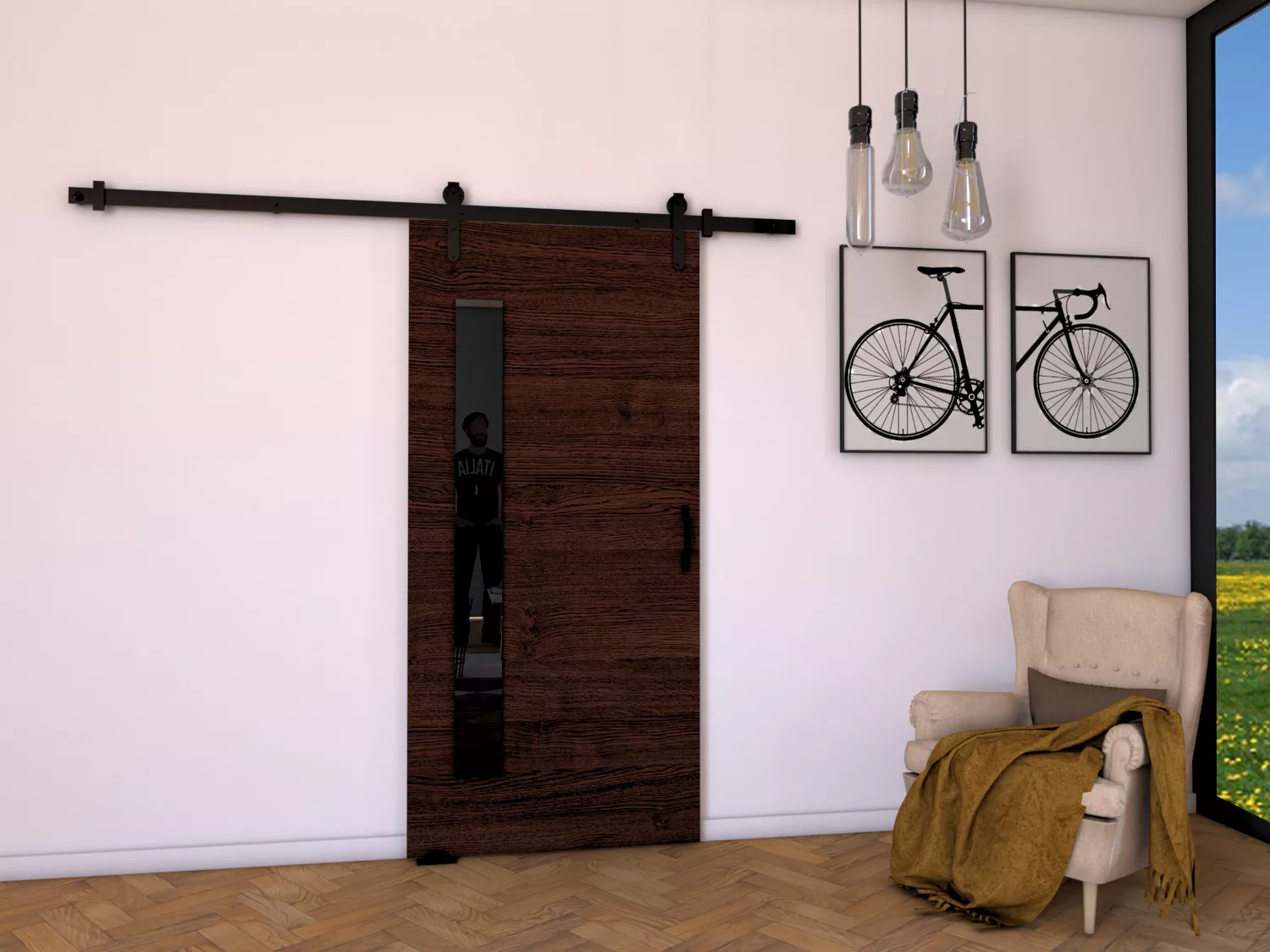 Interiérové dveře na stěnu BUSHLAND 7 zajišťují soukromí bez časově náročné instalace. Dveře zdobí lepený dekorativní prvek z černého skla. Použitý posuvný systém zaručuje tichý chod a bezporuchový provoz po mnoho let.